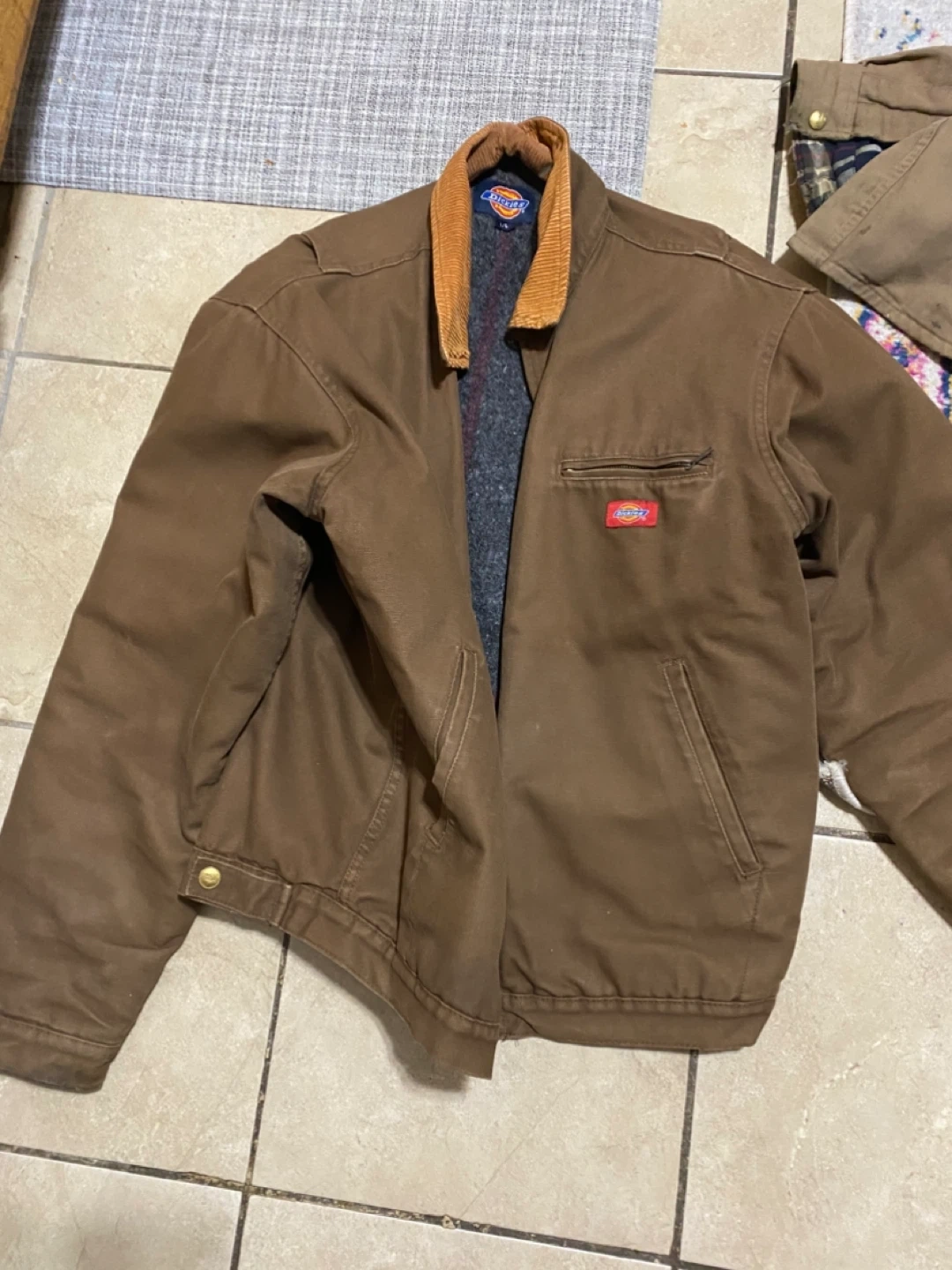 36Selling a Dickies brown canvas jacket in size large (L/G). It's in good condition and ready for a new home! The jacket features a corduroy collar and a warm lining, perfect for cooler weather