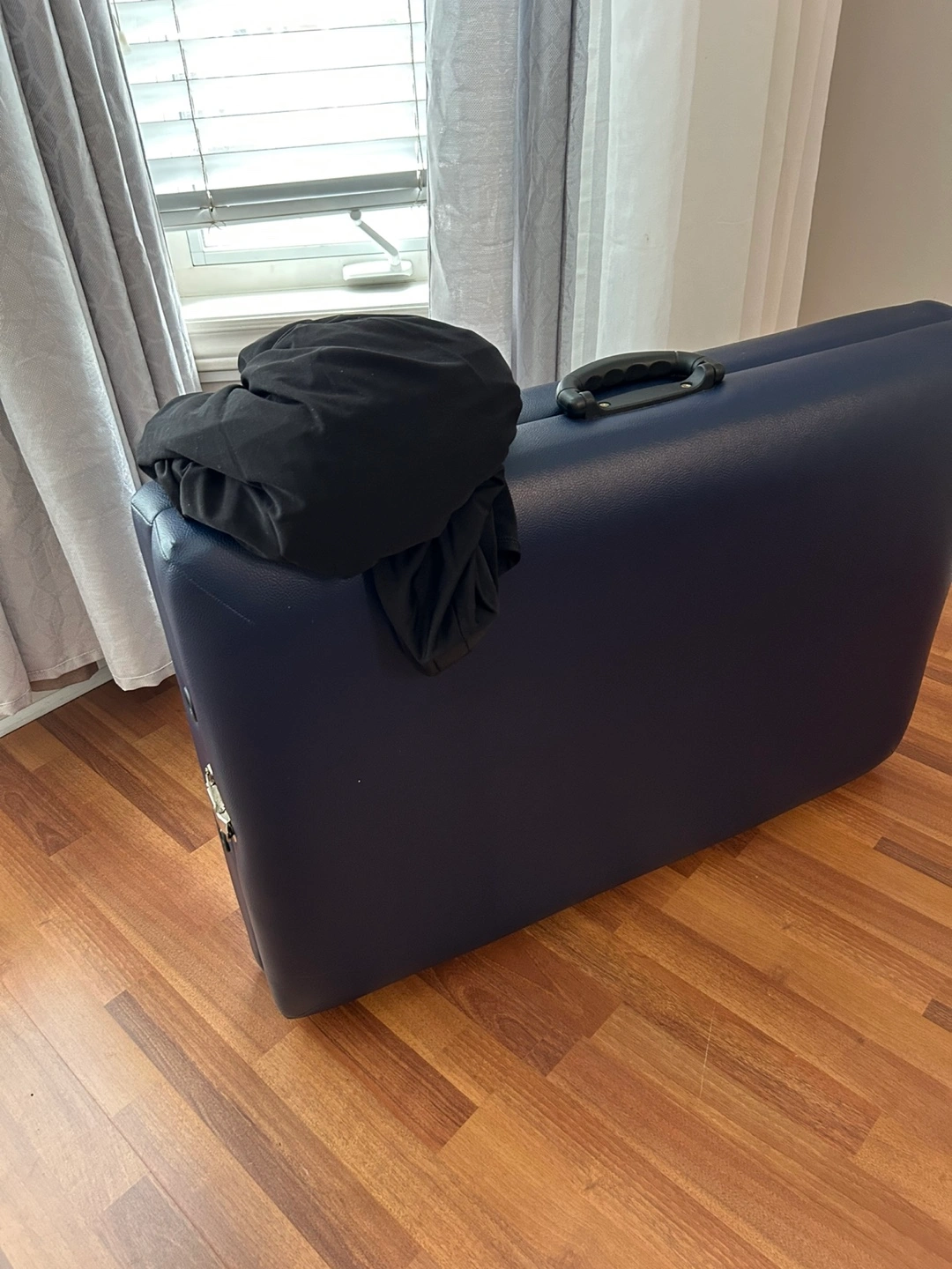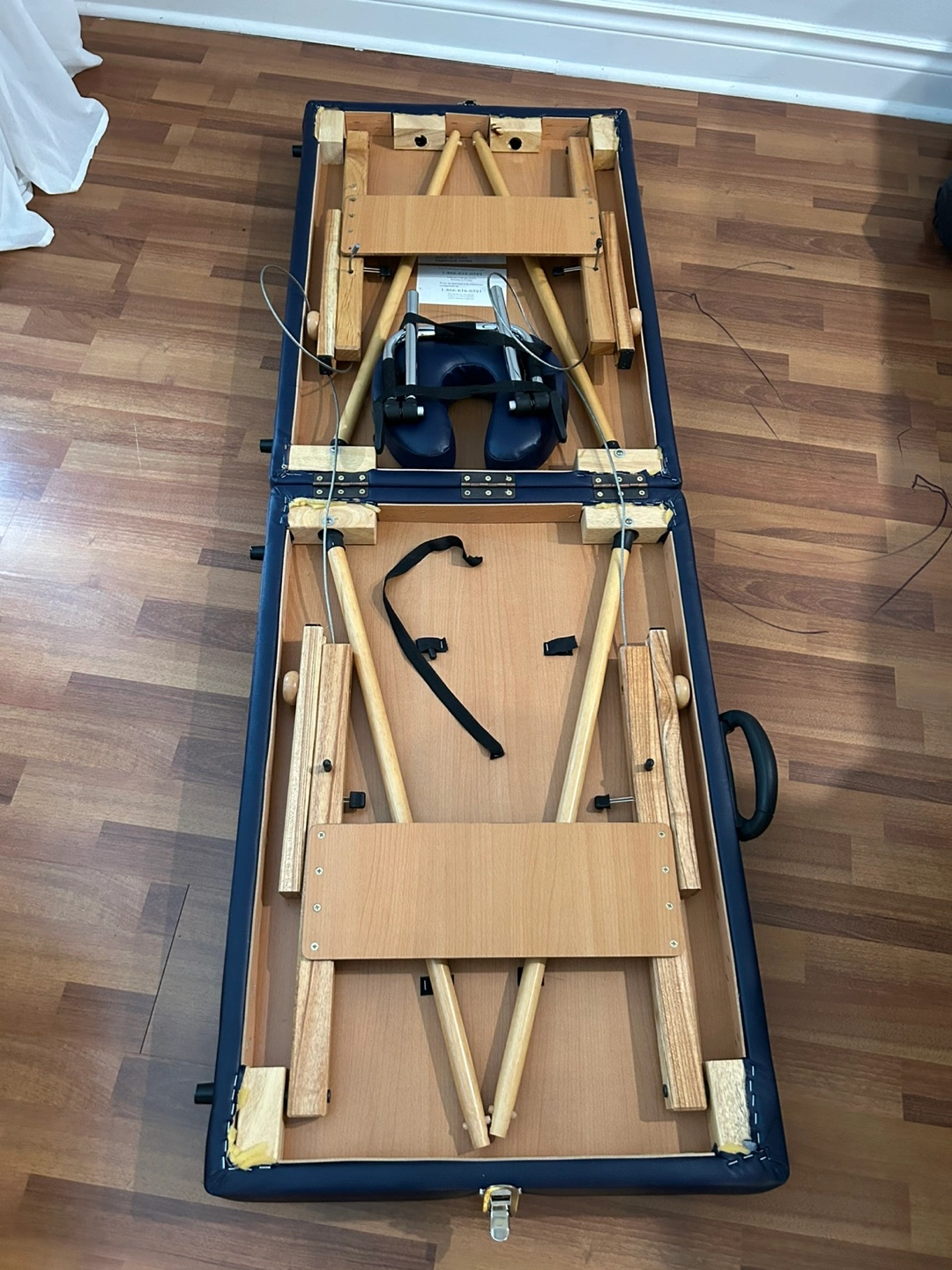 Selling a portable massage table. It's in good condition and very stable and folds up for easy storage and transport. The table is a dark blue colour and has wooden legs. Great for students or professionals, massage therapists, lash technicians who need a mobile option! FREE COVER WITH PURCHASE