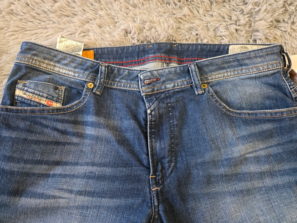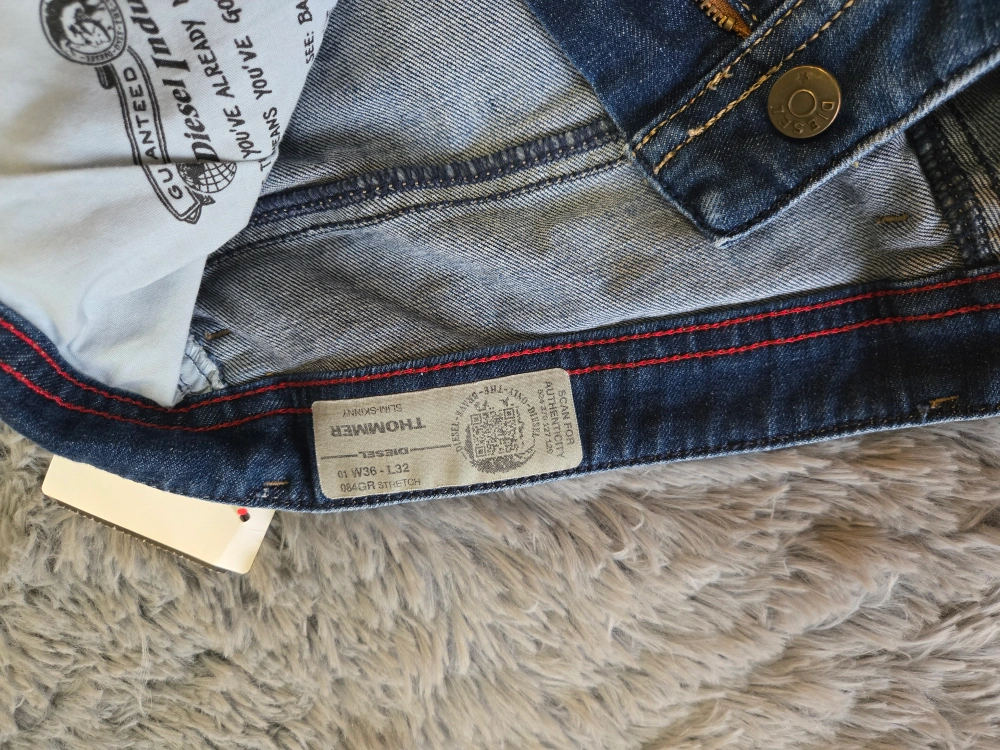 153Men's Diesel Thomer jeans. Size 36x32. Dark wash denim. Slim fit. Good condition. Red stitching detail.