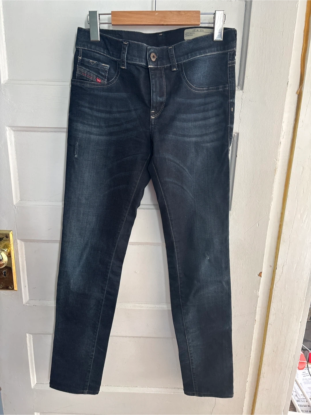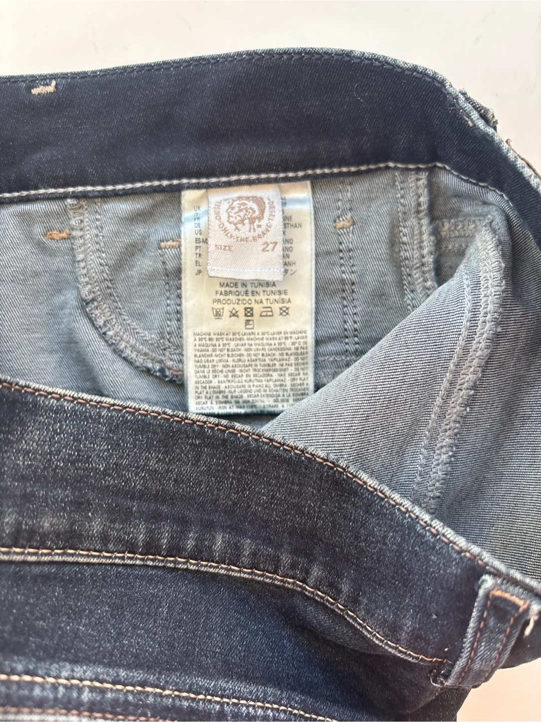 Diesel jeans in a dark wash, size W27. These are in great condition and ready for a new home! They have a bit of stretch for extra comfort.