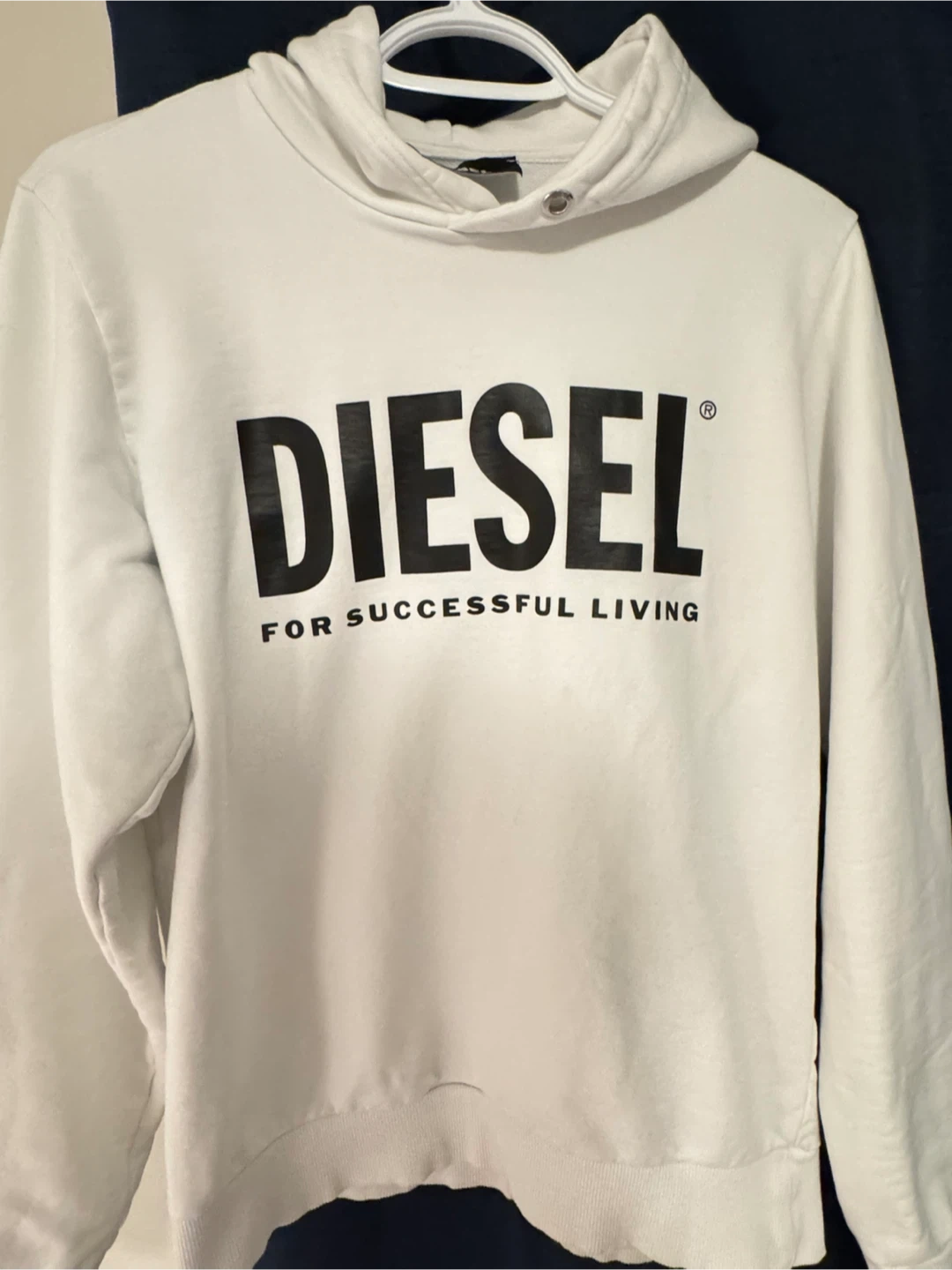 20Selling a Diesel hoodie in white. It features the Diesel logo in black across the chest. Perfect for casual wear!