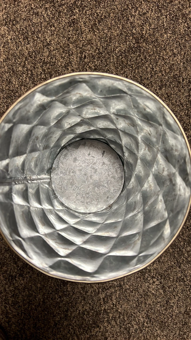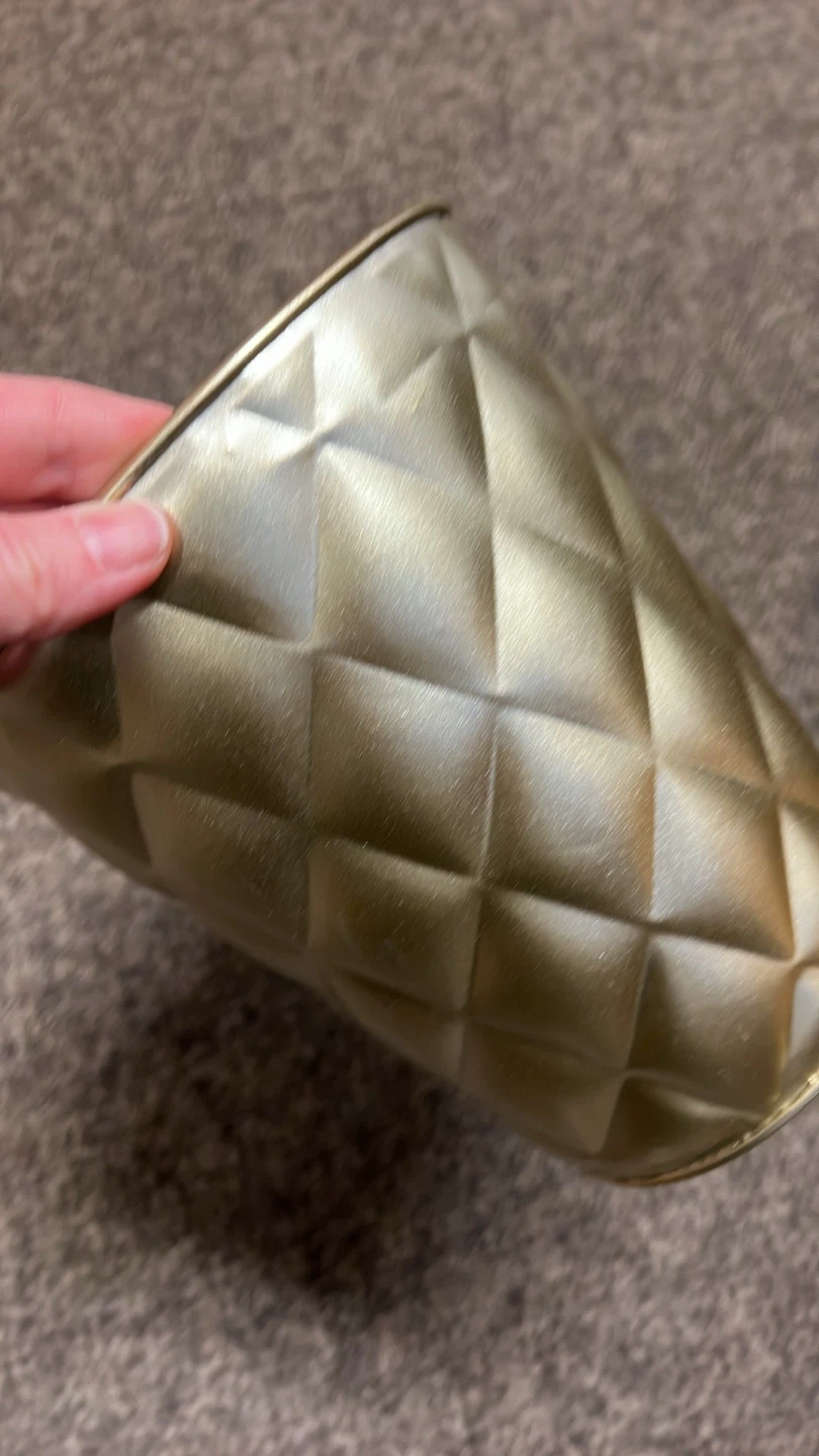 A stylish gold-toned metal planter pot with a diamond-patterned exterior. It's suitable for small indoor plants or as a decorative accent piece. The durable metal construction ensures it's built to last.