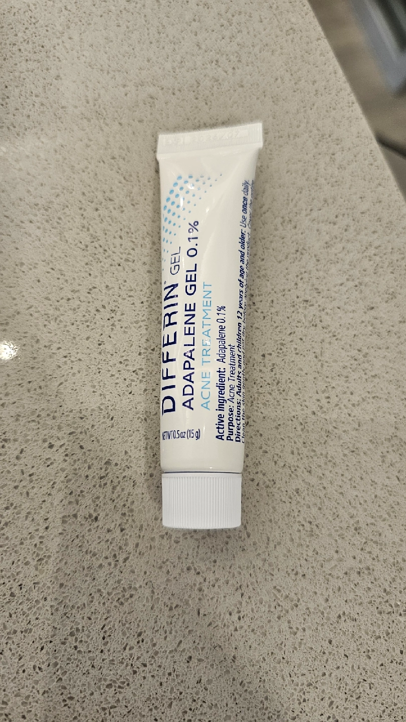 40Selling a tube of Differin Adapalene Gel 0.1% for acne treatment. It contains 0.5 oz (15 g) of product. Perfect for adults and children 12 years of age and older, use once daily to clean the skin gently