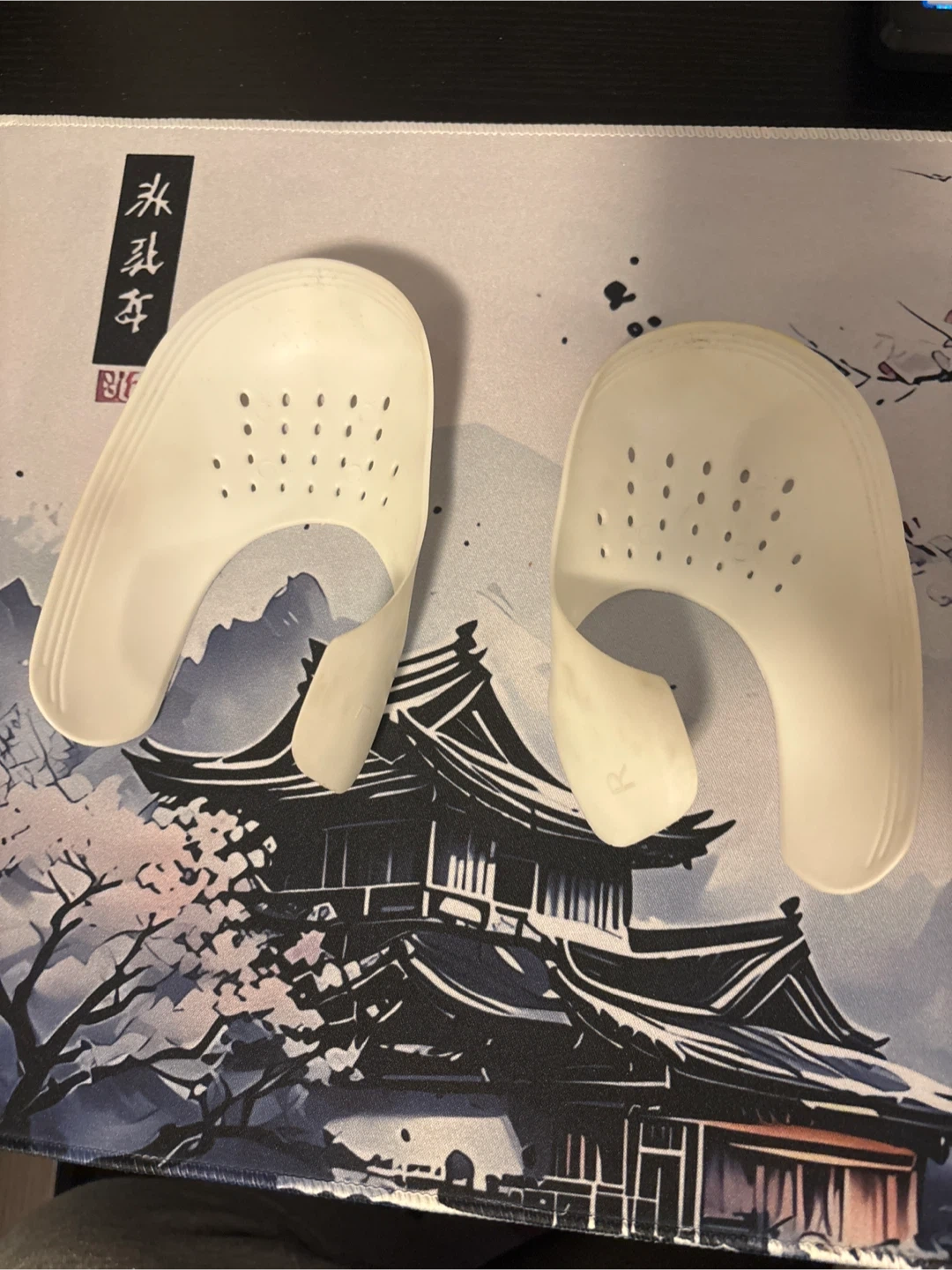 These are shoe toe protectors designed to help maintain the shape of your sneakers. They are made of a flexible plastic material and feature ventilation holes to prevent odour. They're intended to be inserted into the shoes when not being worn.