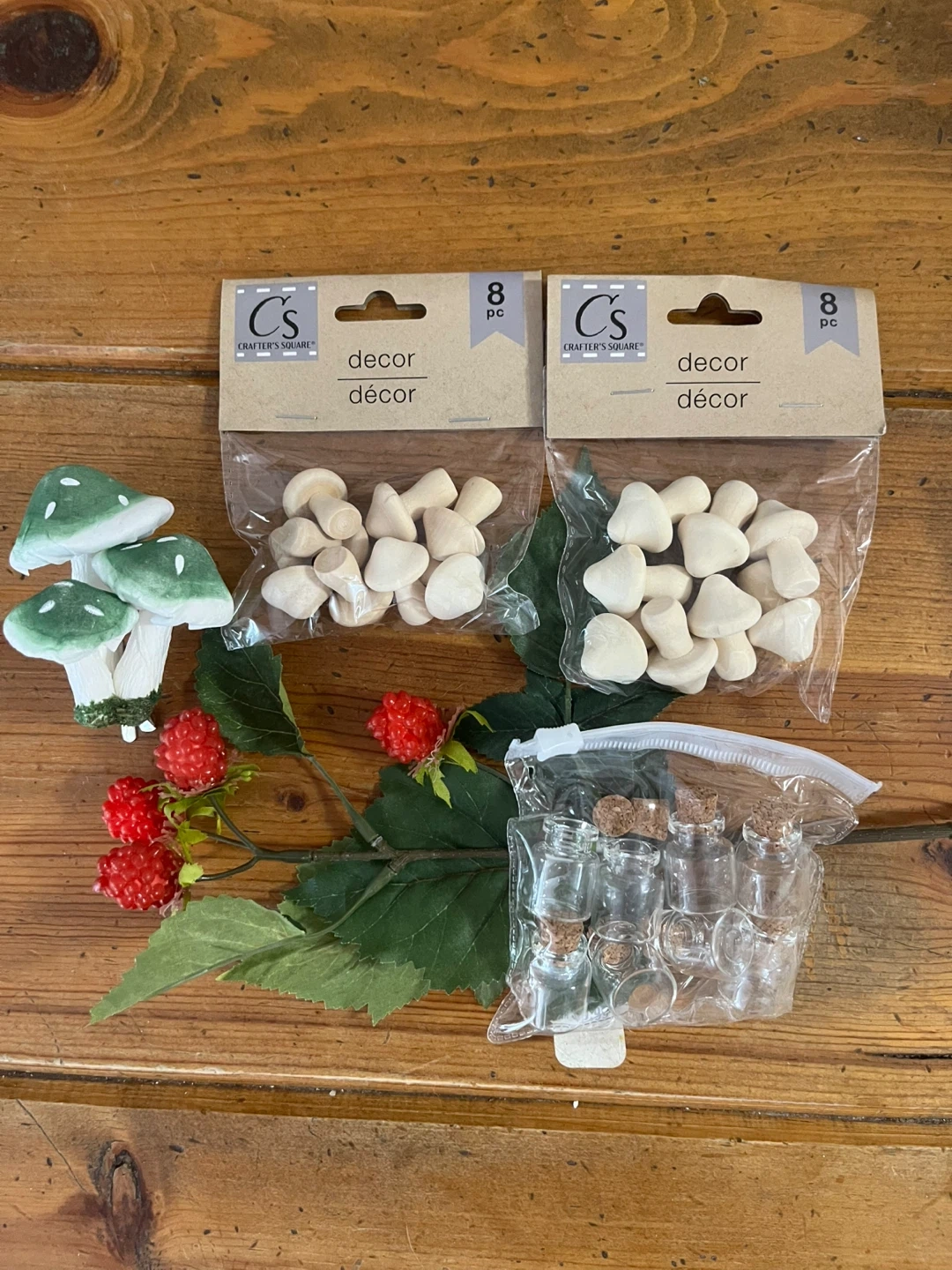 - wooden mini mushrooms (x2 bags, 16 total mushrooms)