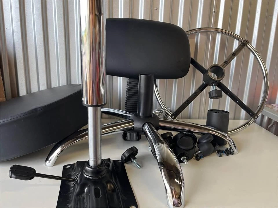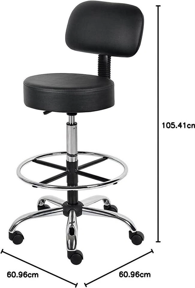 Upholstered in durable Polyurethane for easy maintenance and cleaning. Available in beige or black. Adjustable seat height (28.5"-34.5") and back height (41.5"-47.5"). Features dual wheel casters and adjustable back depth, which is also removable.