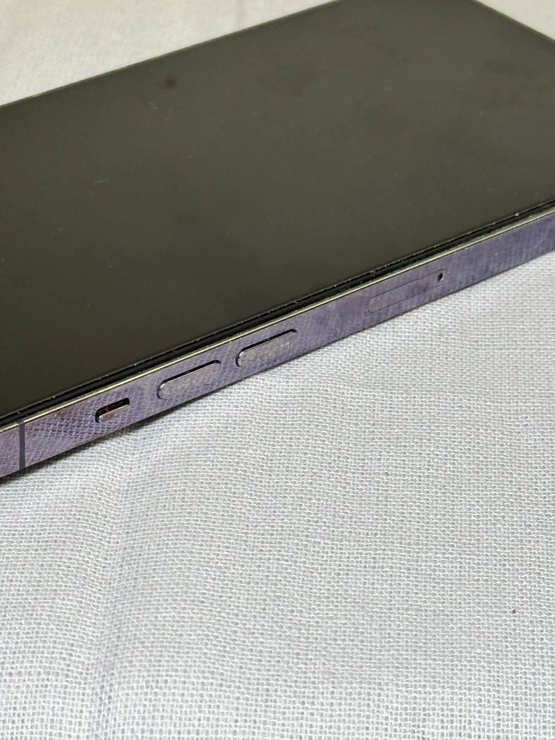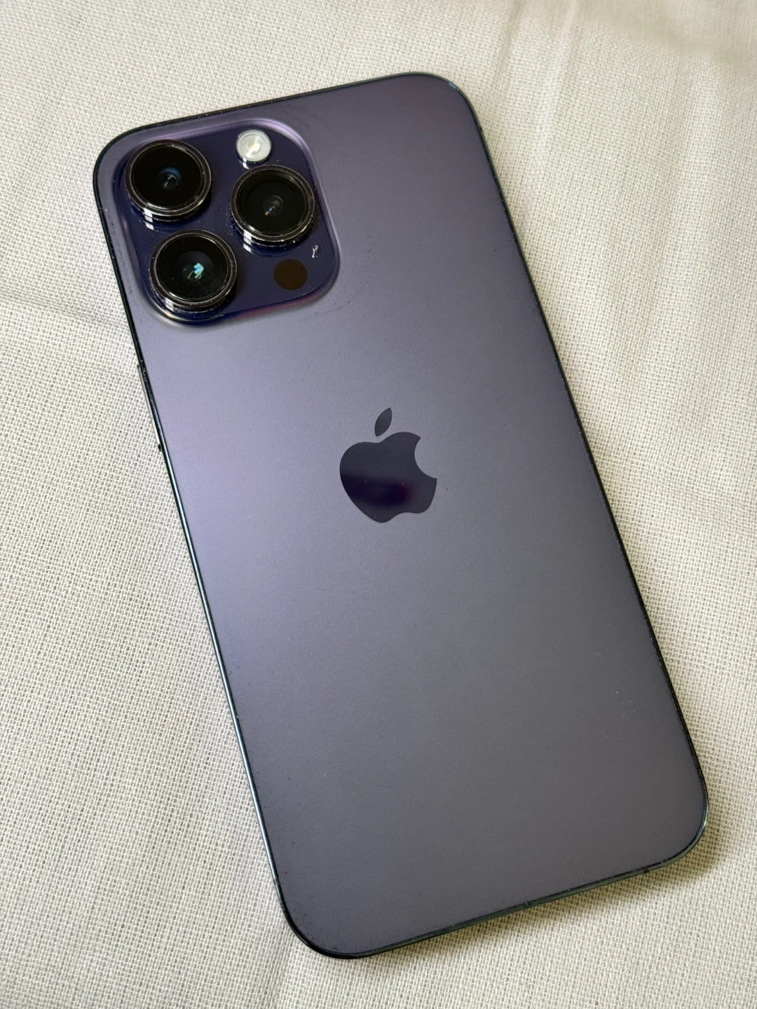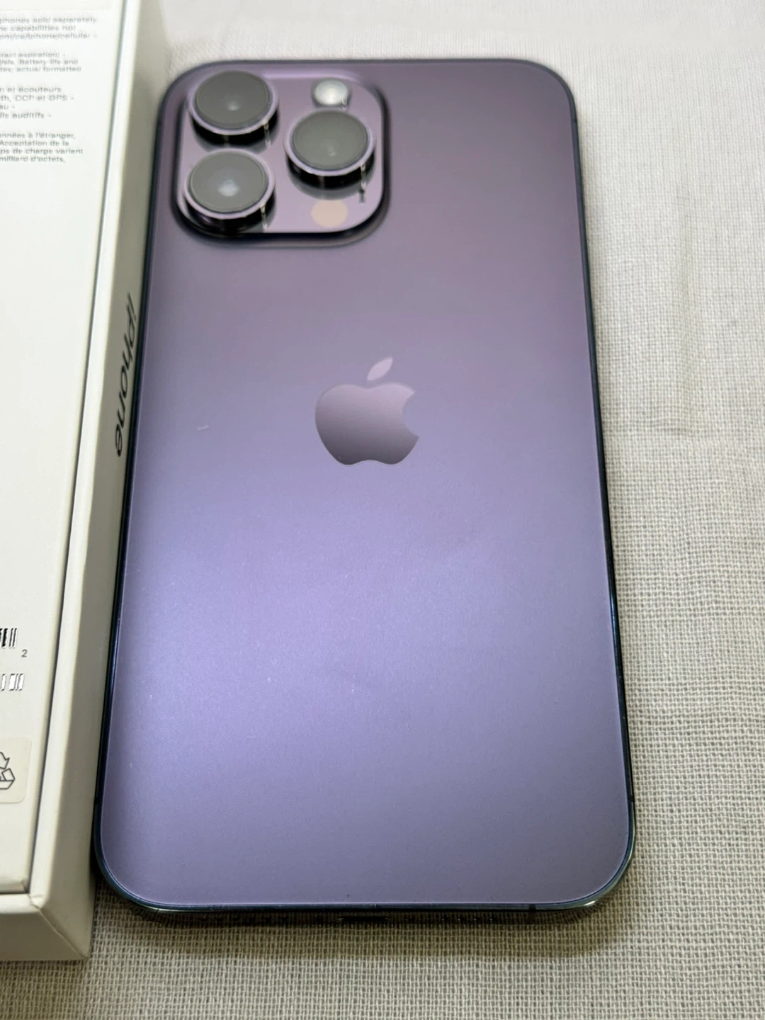 iPhone 14 Pro Max 512GB purple color, with screen protector on.