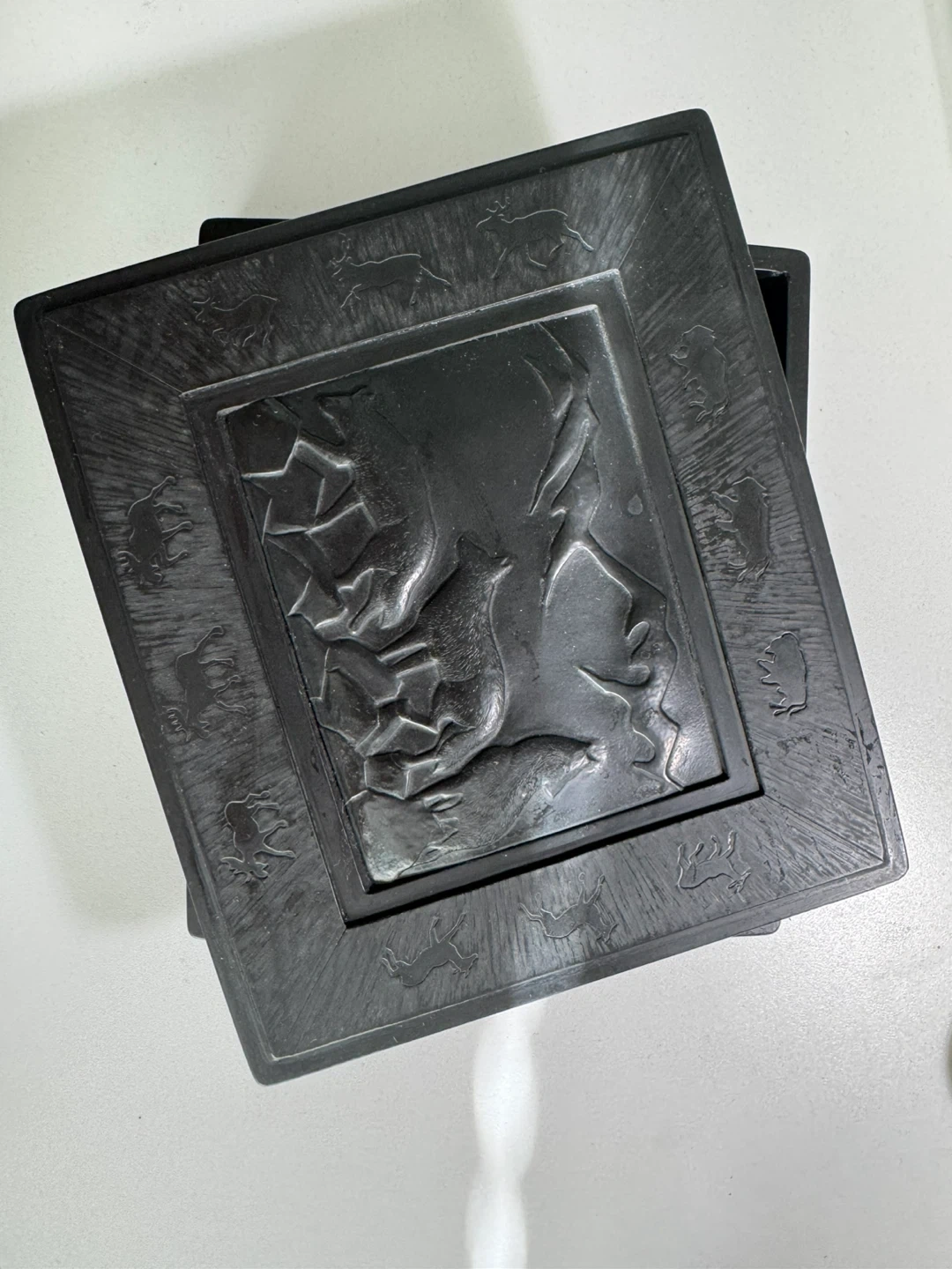 This is a Nature Stone limited edition collector box, "Native Cultures and Traditions". It features embossed art of Indigenous animals and a profile. Made in Canada.