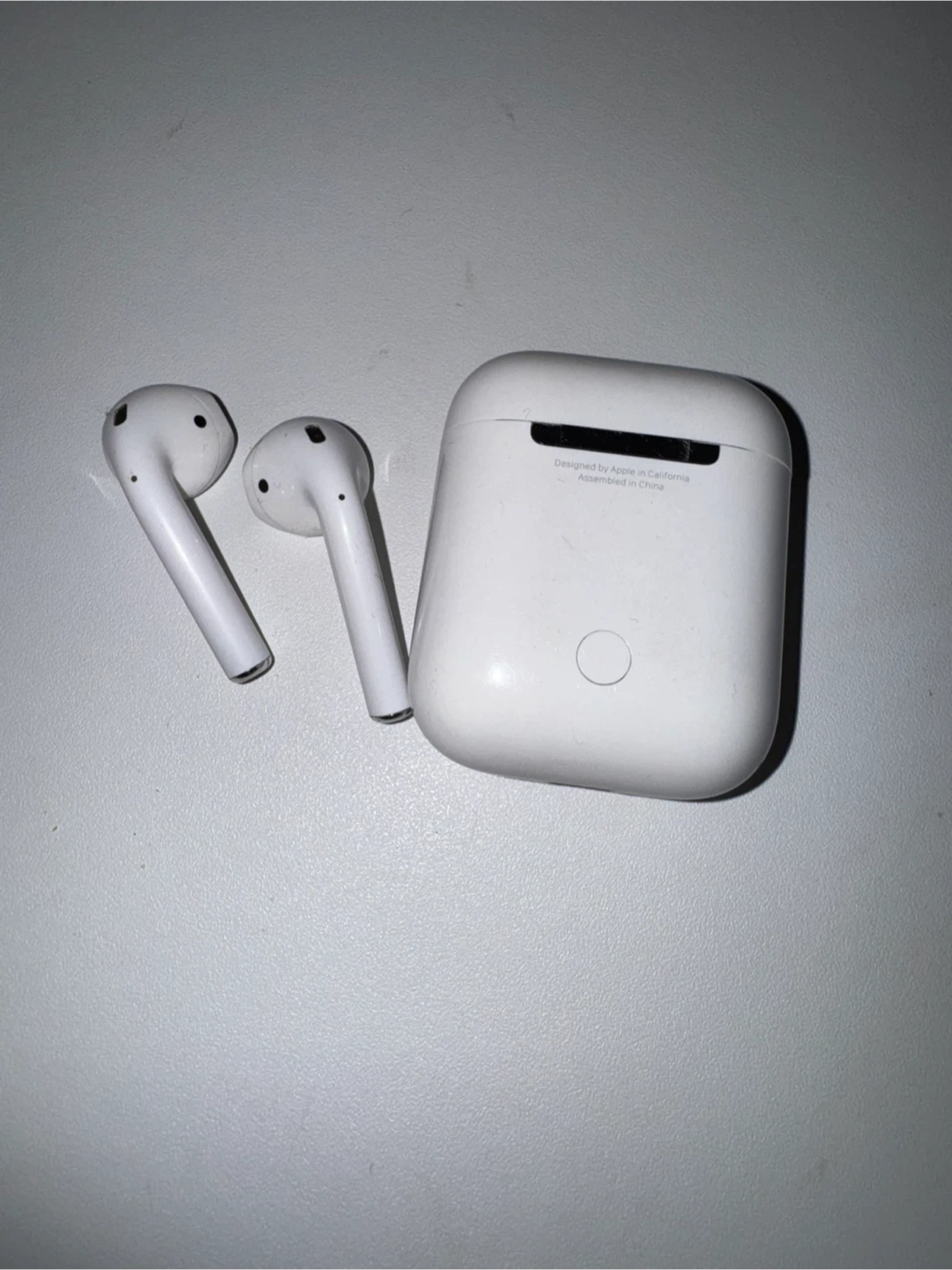 Used Apple AirPods (2nd Gen) with their charging case. They offer wireless connectivity and sound. Includes the charging case.