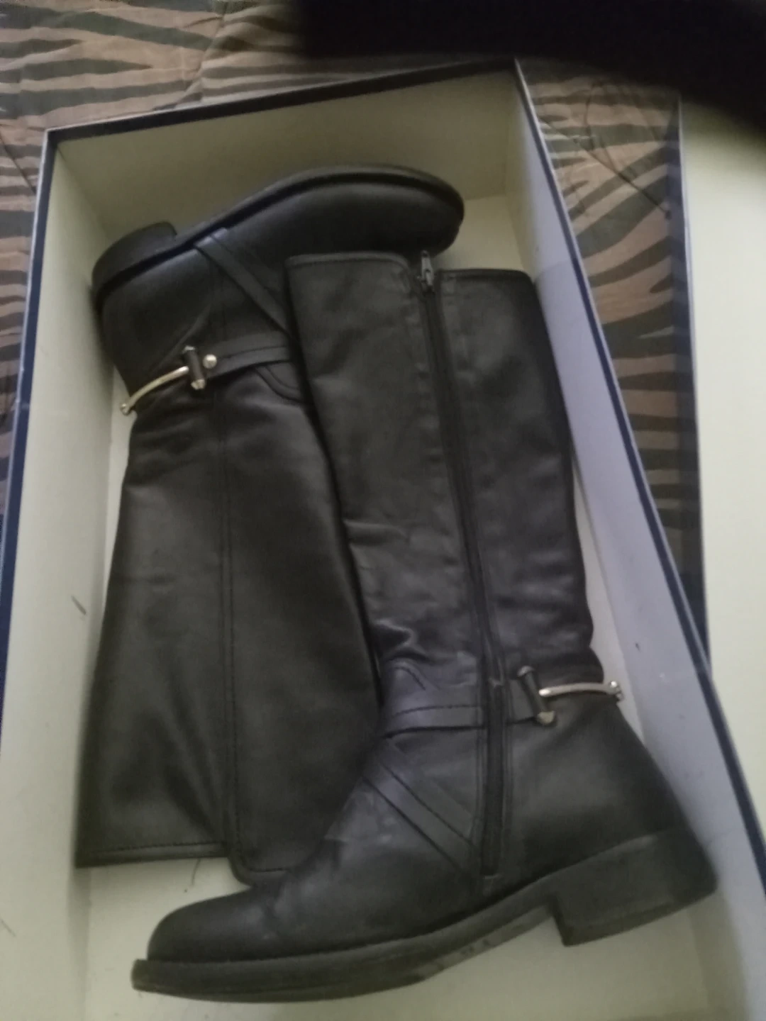 Black leather tall boots from Napoleoni. These boots feature a side zipper and buckle strap detailing. Comes with original box. Made in Italy.
