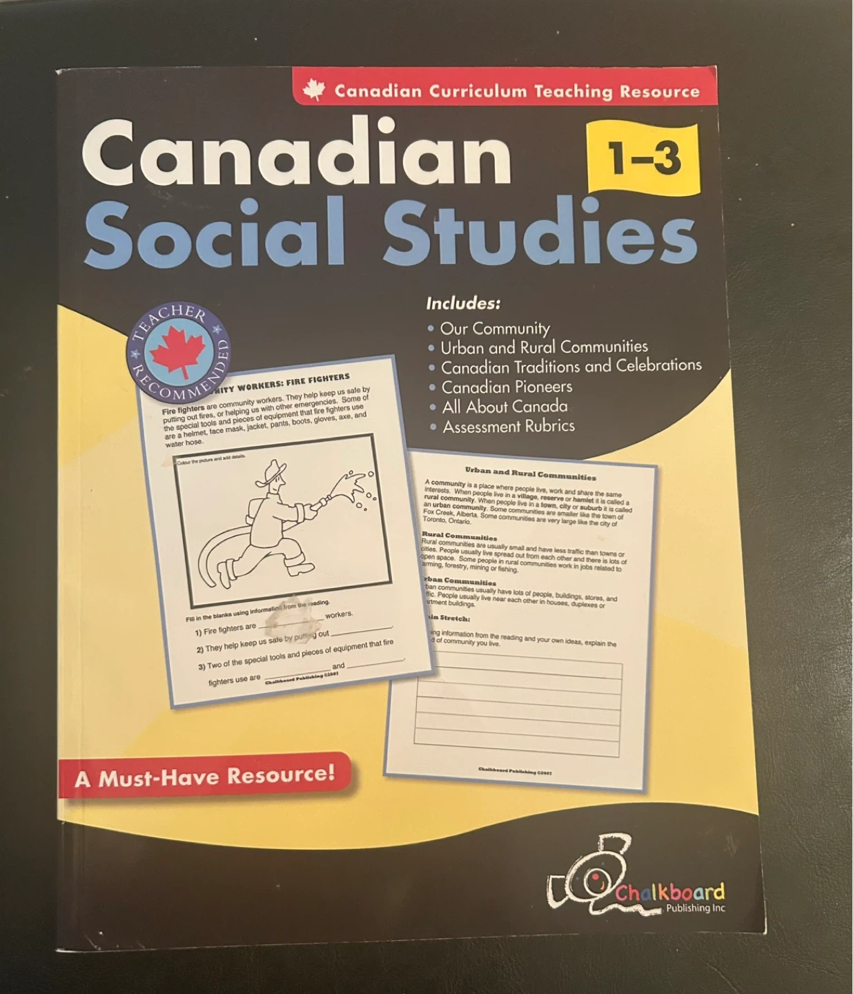 This Canadian Curriculum Teaching Resource covers Our Community, Urban and Rural Communities, Canadian Traditions and Celebrations, Canadian Pioneers, and All About Canada. It's designed for grades 1-3 and includes assessment rubrics. Published by Chalkboard Publishing Inc.