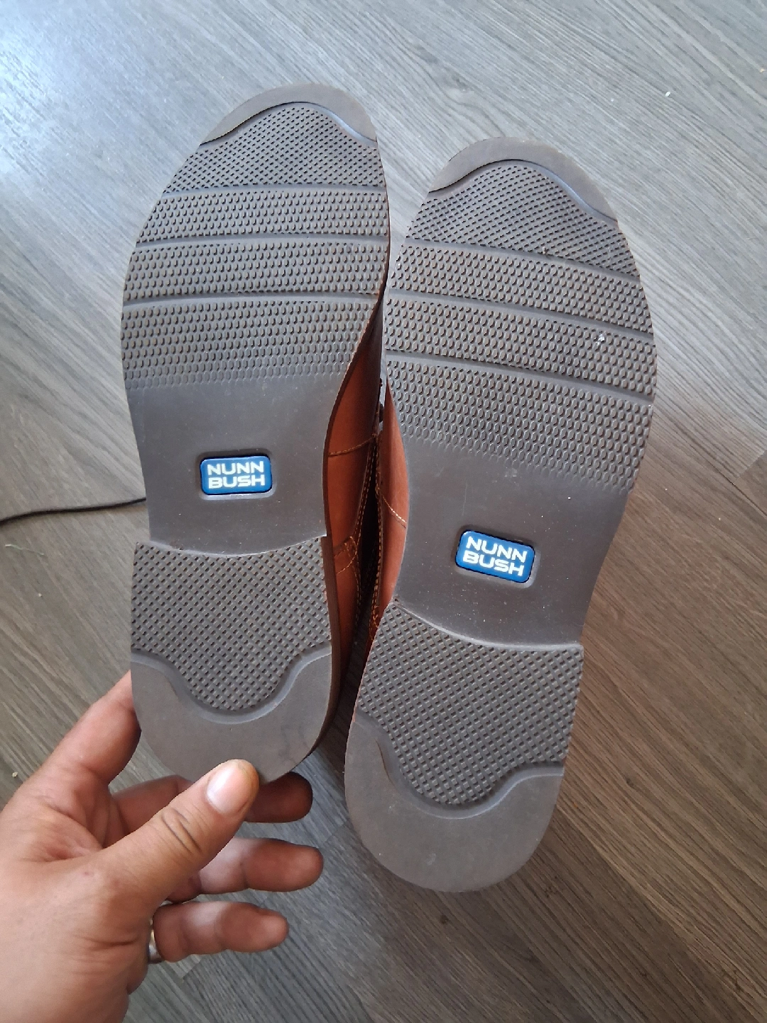 Selling a pair of Nunn Bush men's brown leather shoes. They have a stylish design and are in good condition. These shoes are perfect for everyday wear or dressing up for a special occasion! They have a comfortable sole and are made with quality materials size 9 mens message me 780-232-1282