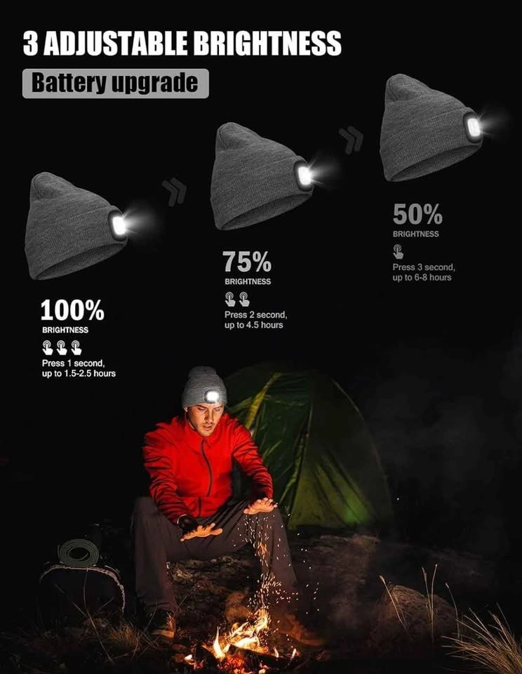 💥BRAND NEW💥 Unisex LED Lighted Beanie Cap, USB Rechargeable Hands Free 4 LED Headlamp Cap