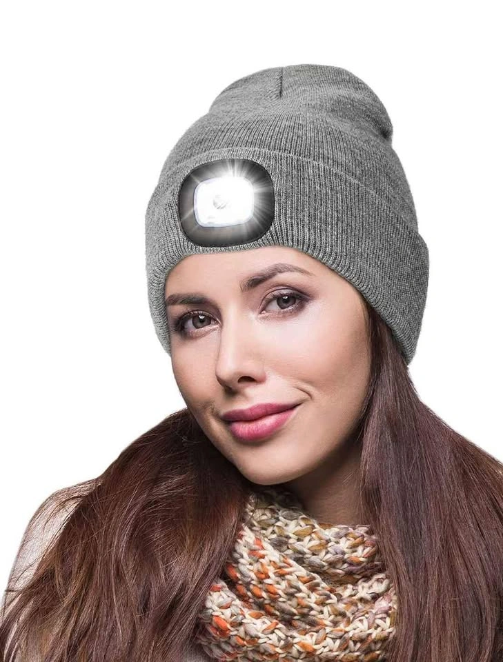 Warm Winter Knitted Hat with LED Flashlight for Hiking, Biking, Camping, Auto Repair, Walking at Night