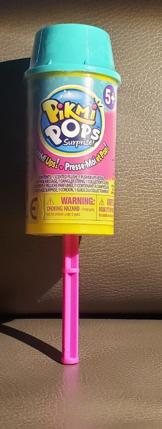 Selling a Pikmi Pops Surprise toy, perfect for kids aged 5 and up! It includes a scented plush, a Pushmi Ups vessel, a surprise message, a dangler string, and a collector's guide