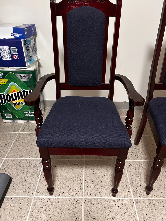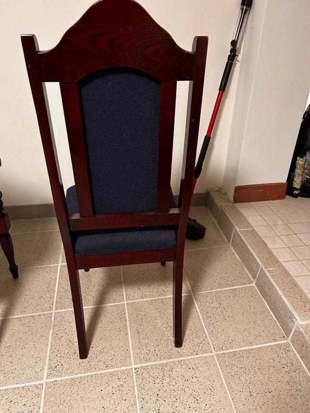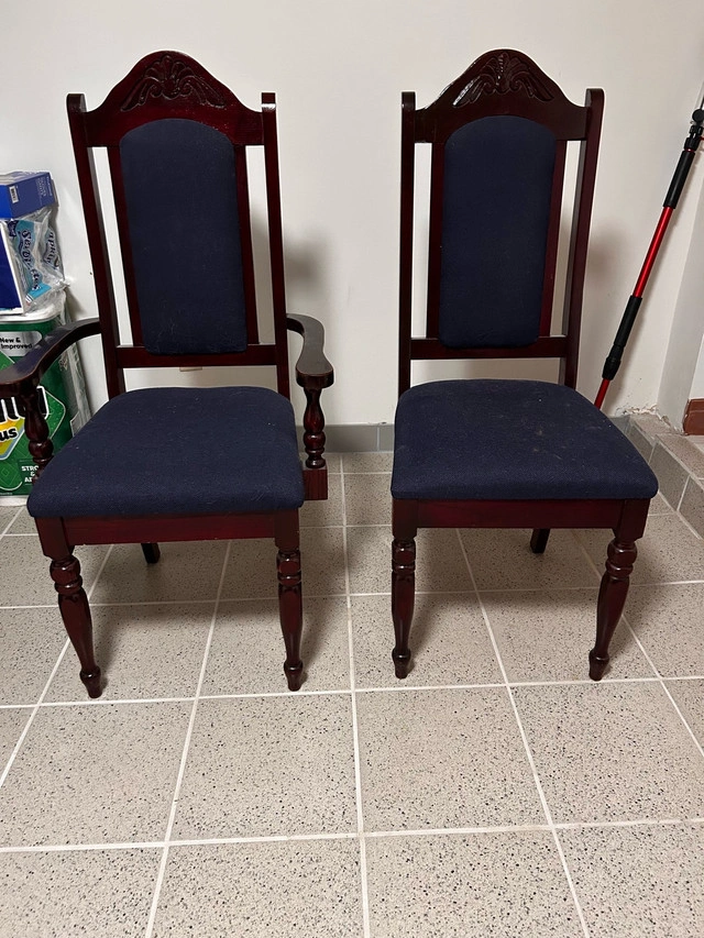 Enhance your dining space with these used, but sturdy dining chairs, perfect for family meals or elegant dinner parties. The chairs feature a classic design with a wood frame and comfortable upholstered seats. The set includes two chairs, ready to add a touch of traditional charm to your home. Additional details: - Set of two dining chairs - Sturdy wood frame - Upholstered seats for comfort These chairs are looking for a new home where they can continue to be part of lively dinners and cozy gatherings. If this ad is still up, these chairs are available! Similar chairs are going for $40-$100 on Kijiji. Selling both for $80. Cash only