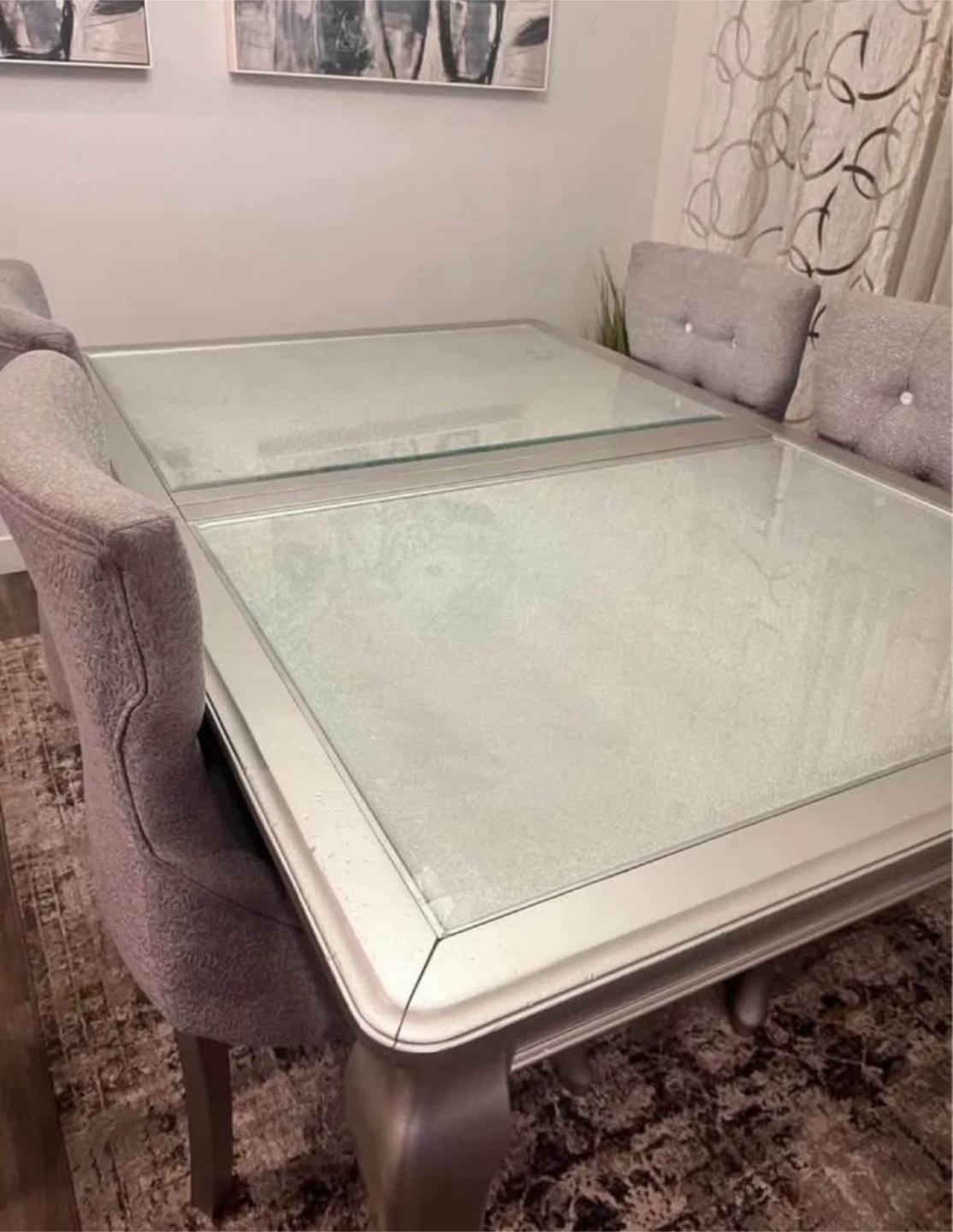 10Selling my dining table in great condition - used but almost new, with a few tiny scratches that are barely noticeable. Throwing in 4 FREE chairs and a FREE rug. Perfect for someone looking to complete a dining set without hassle.