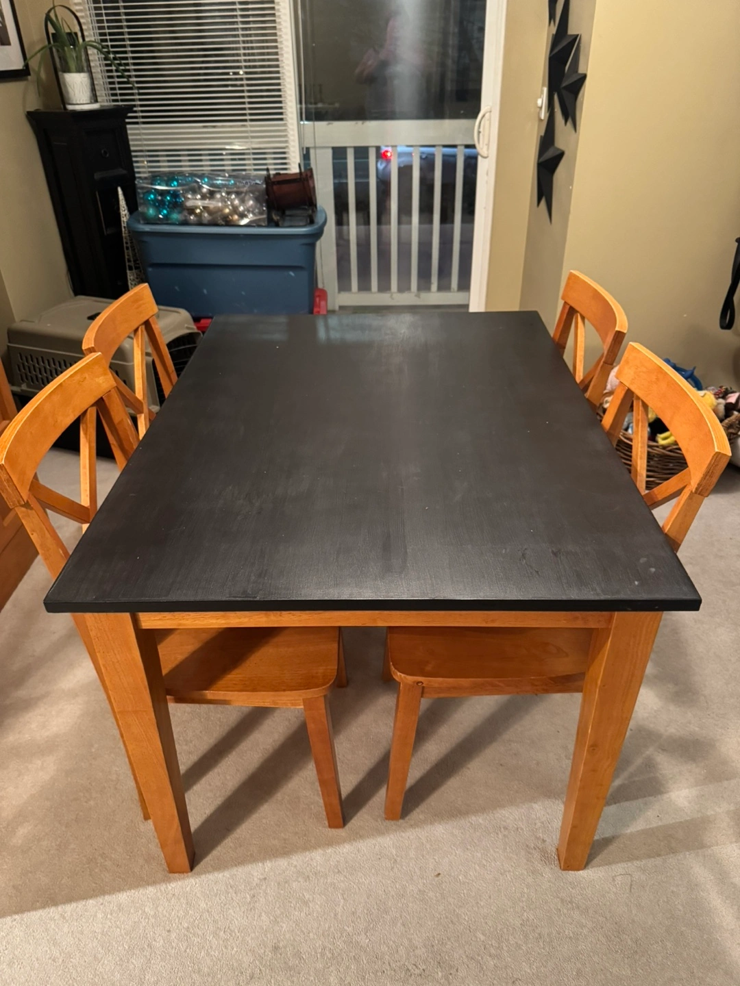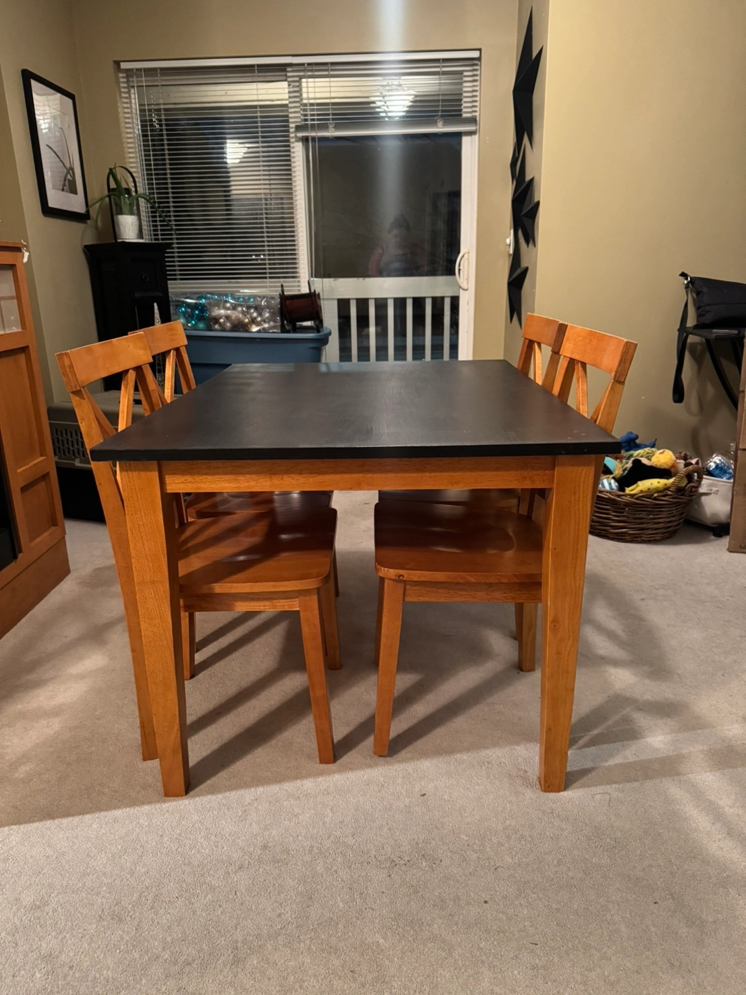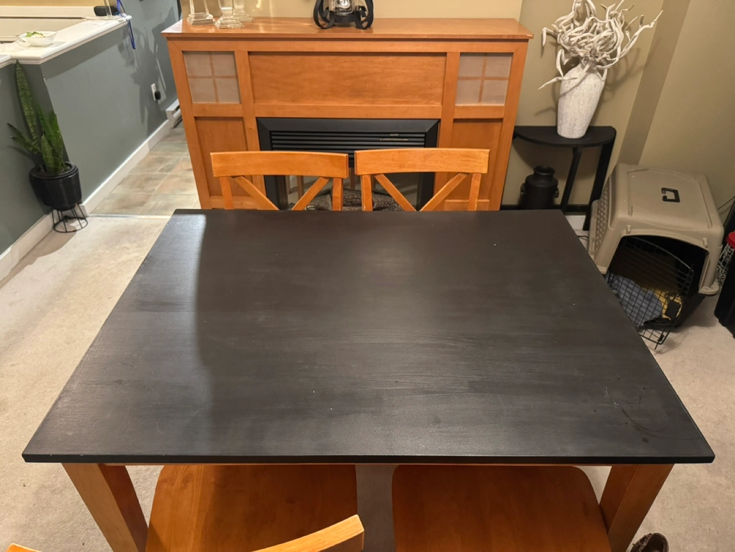 Dining Table and Chair Set – Solid Construction, Modern Look – $175 • Dimensions: 36” x 48”, 39” high • Includes: 1 table + 4 matching chairs • Features: • Wood construction for durability • Refinished tabletop with black Fusion paint for a sleek, modern finish • Comfortable, sturdy chairs in great condition This table and chair set is perfect for a dining room, kitchen, or even a work/study space. Its compact size works well in small spaces while providing ample seating for family or guests. The black tabletop pairs beautifully with the natural wood tones for a timeless style. Condition: Good – sturdy, with some signs of wear on the tabletop. Pickup in Willoughby area. Asking $175 OBO. Message me if you’re interested or have any questions! Unique Storage Cabinet with