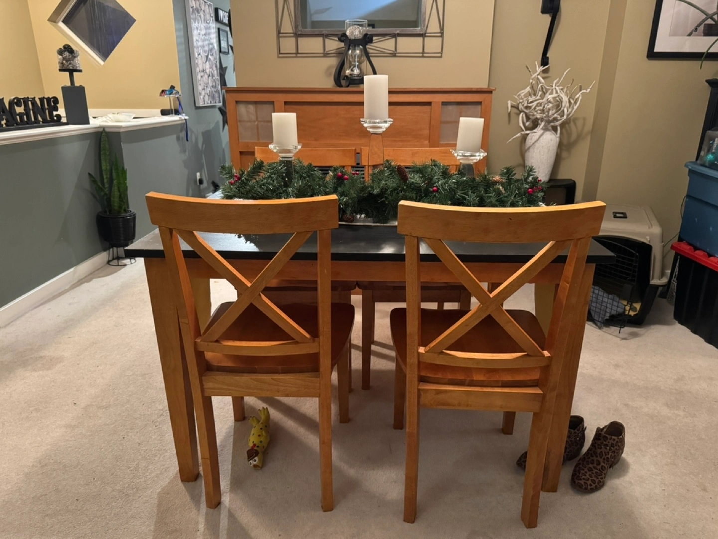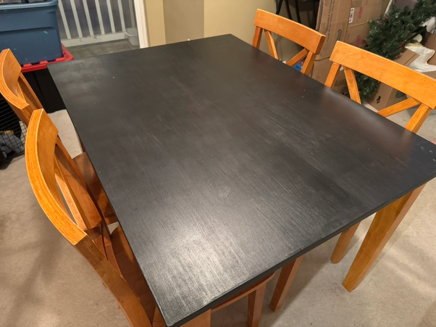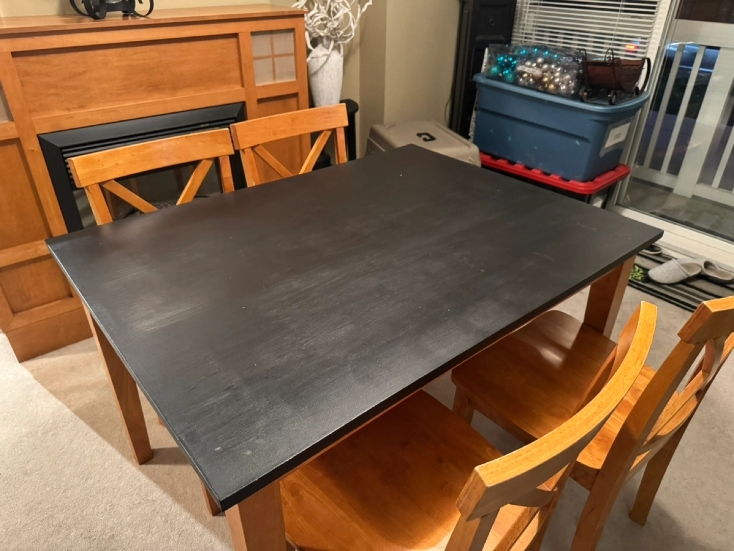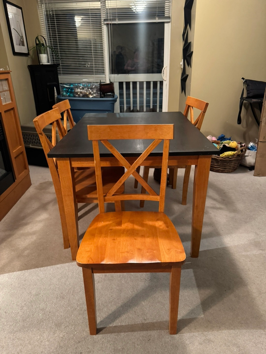 Dining Table and Chair Set – Solid Construction, Modern Look – $175 • Dimensions: 36” x 48”, 39” high • Includes: 1 table + 4 matching chairs • Features: • Wood construction for durability • Refinished tabletop with black Fusion paint for a sleek, modern finish • Comfortable, sturdy chairs in great condition This table and chair set is perfect for a dining room, kitchen, or even a work/study space. Its compact size works well in small spaces while providing ample seating for family or guests. The black tabletop pairs beautifully with the natural wood tones for a timeless style. Condition: Good – sturdy, with some signs of wear on the tabletop. Pickup in Willoughby area. Asking $175 OBO. Message me if you’re interested or have any questions! Unique Storage Cabinet with