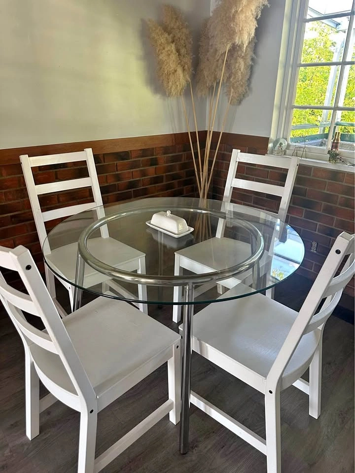 IKEA White Solid Wood Chairs and table