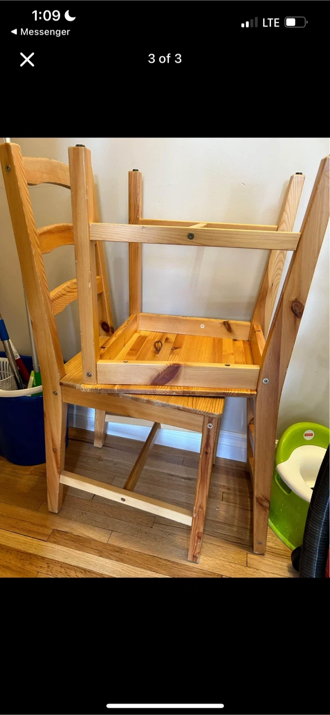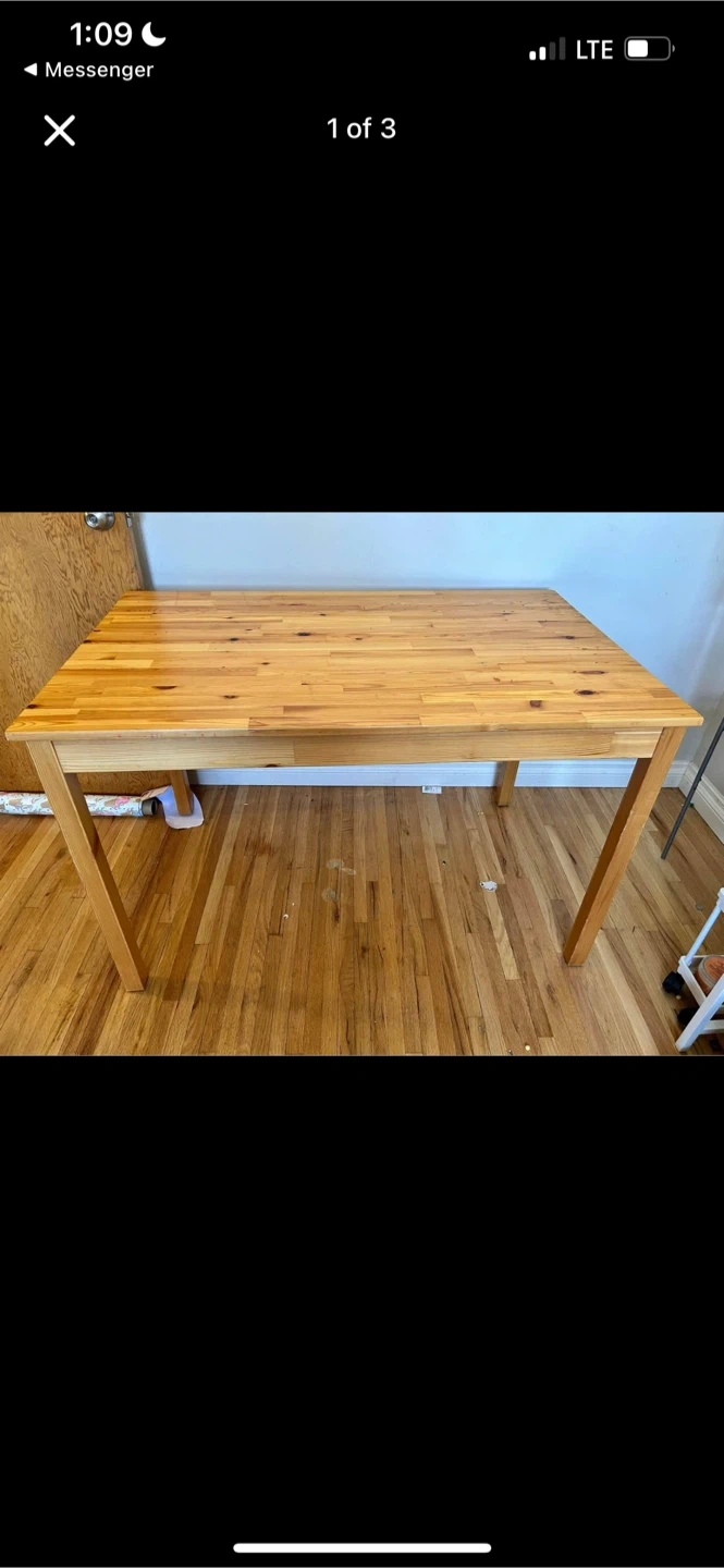Dining table and 2 chairs set in good condition. Perfect for a small dining area or kitchen. 46.5 inches long, 29 inches wide and tall. A few scratches on the surface but otherwise in great shape and condition.