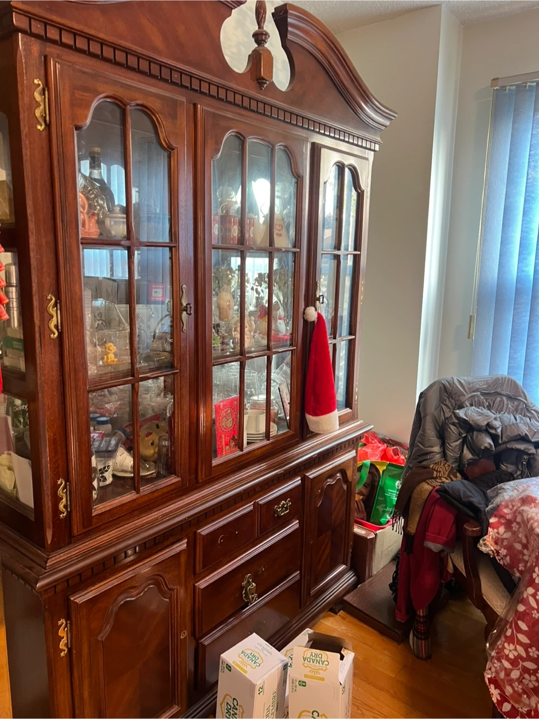 Vintage Dark Wood China Cabinet