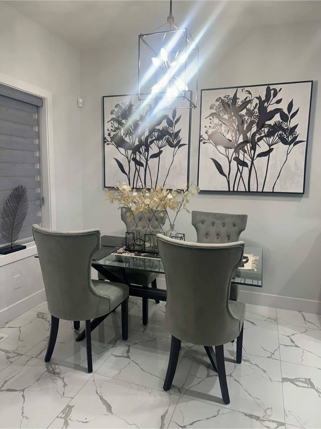 10Selling a dining table with four chairs. The set is in great condition and would look lovely in any dining room!