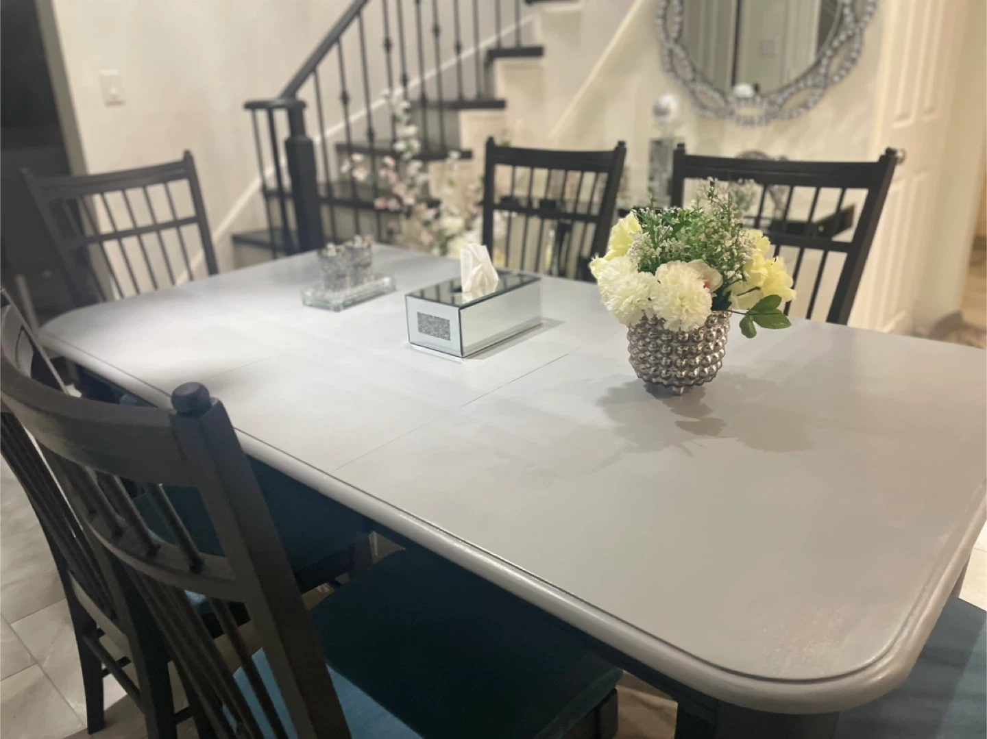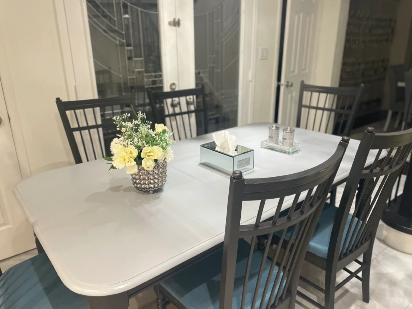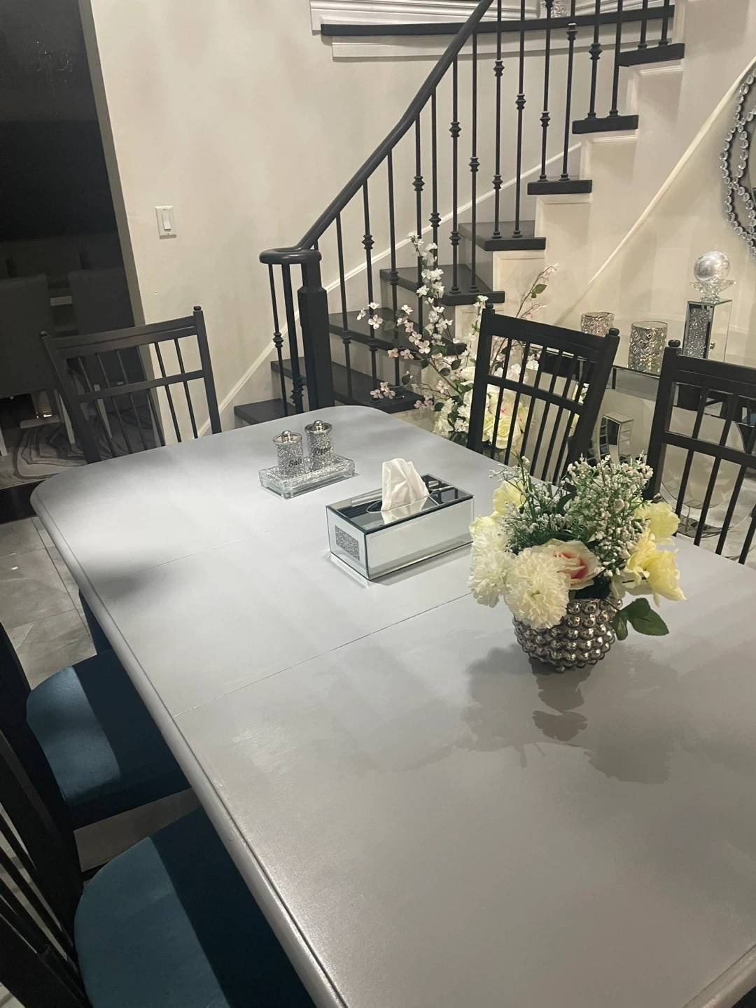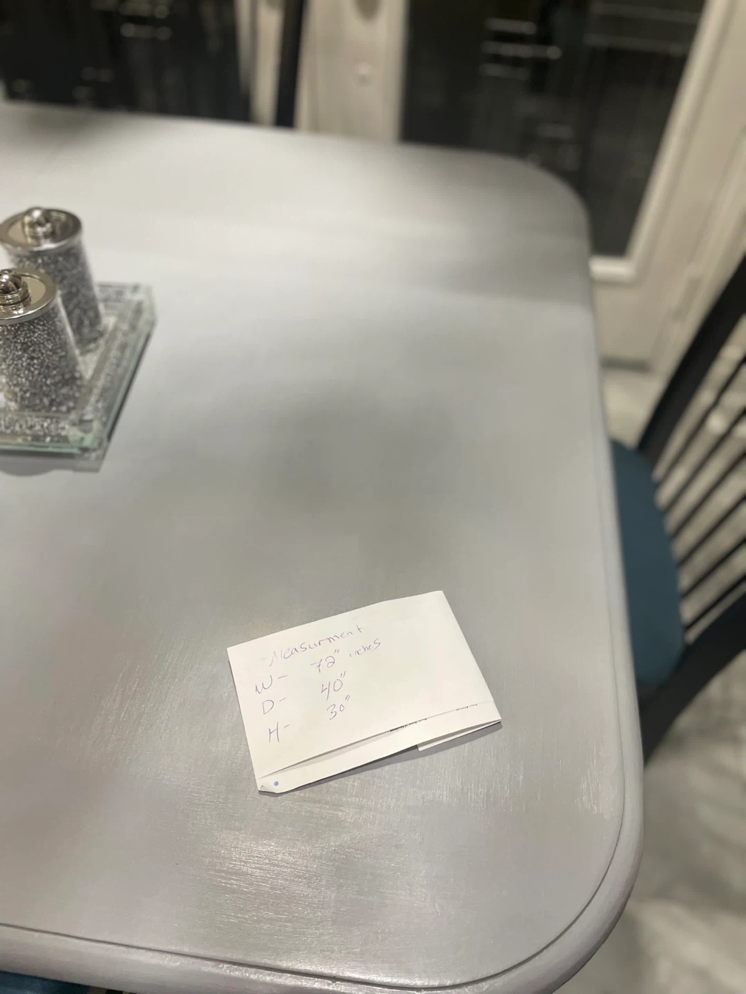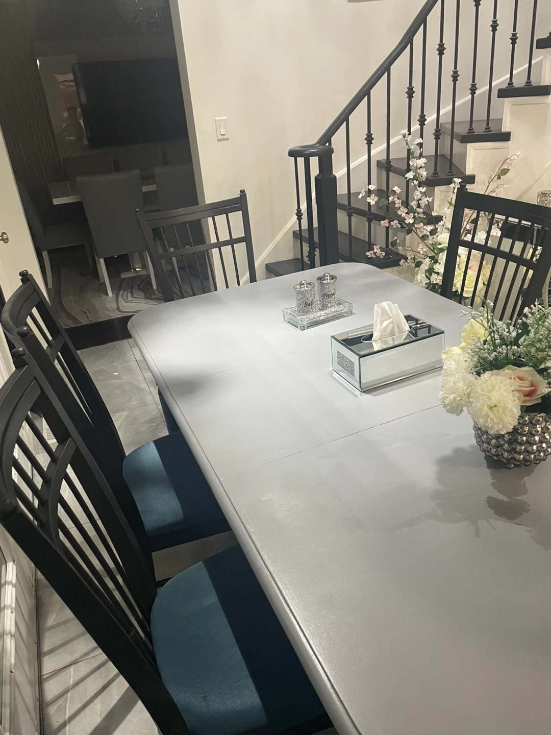 10Selling a dining table with six chairs. The table dimensions are approximately 72 inches in length, 40 inches in width, and 36 inches in height. It's a great set for family dinners or entertaining guests!