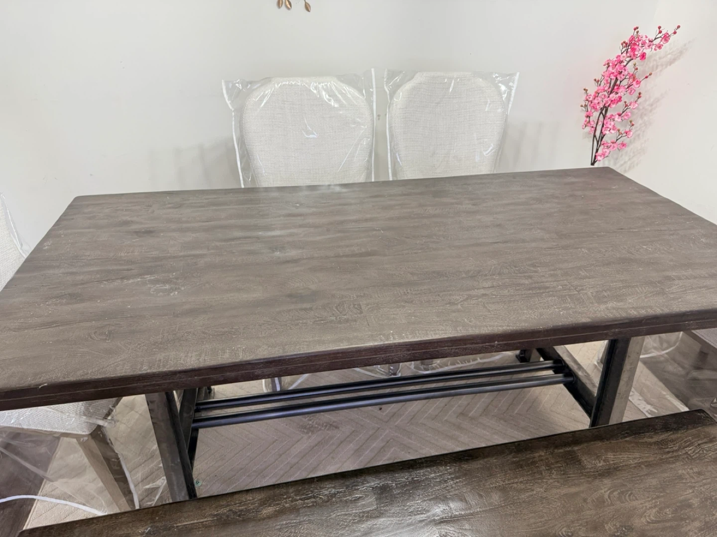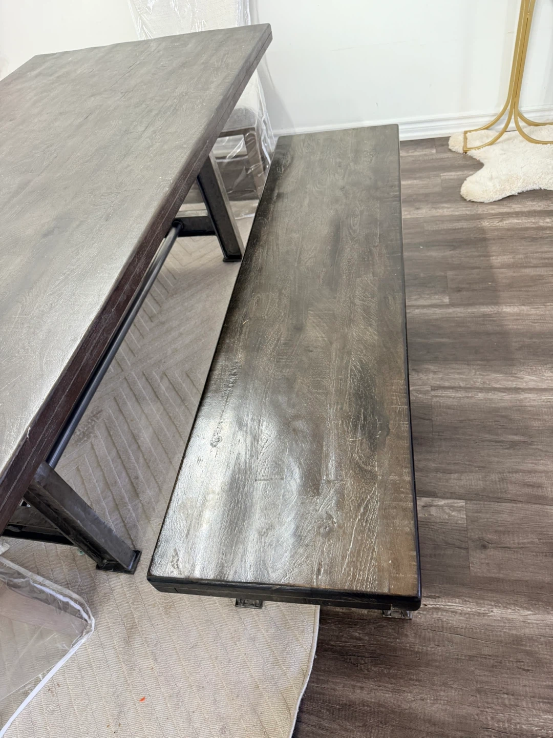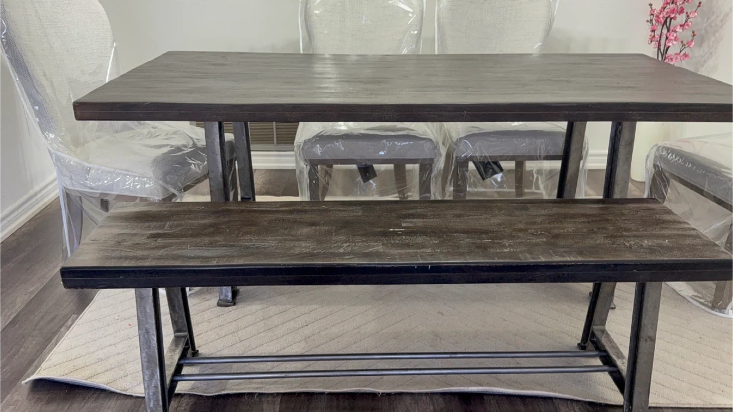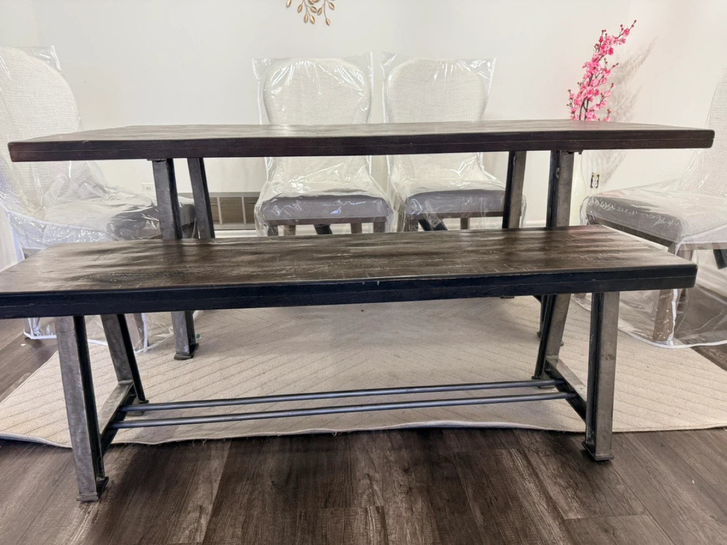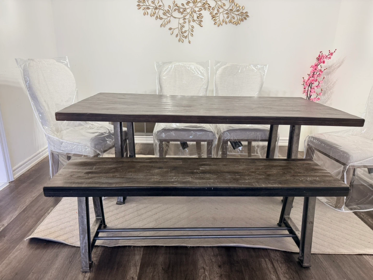 10Selling a dining table with a bench.its very nice got it from Ashely stores, stand is build with Iron and top is dark wood finish. We are moving cant take this heavy table and bench.
