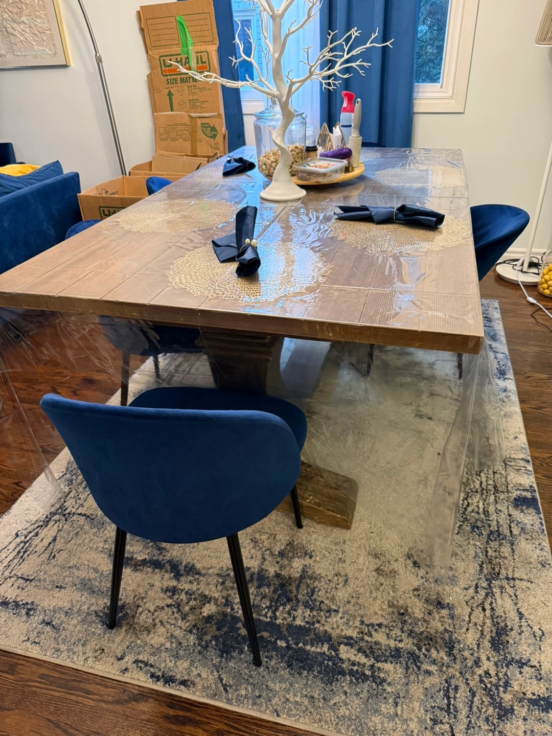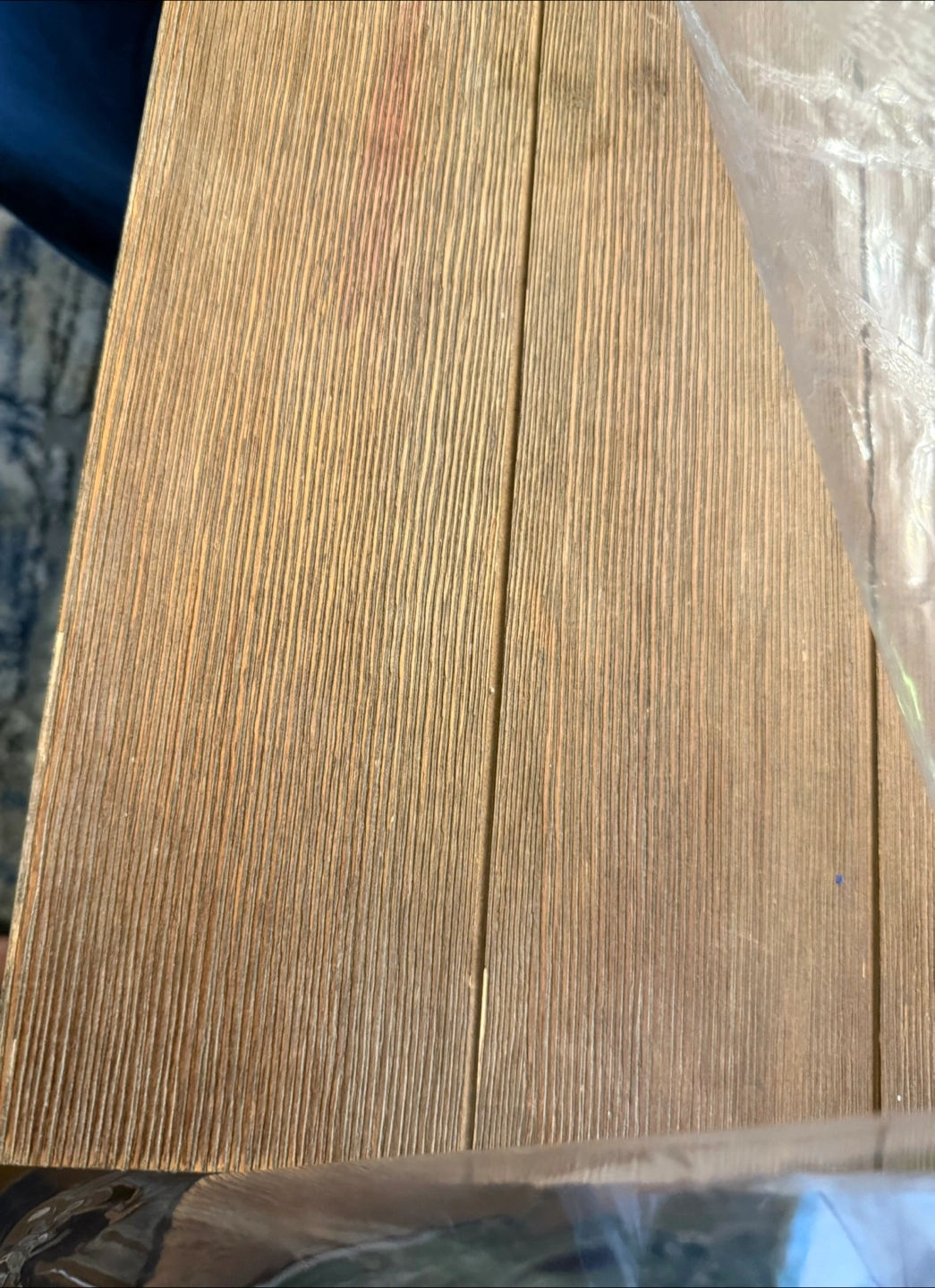 Selling a dining table with a lovely wood grain finish. It's a great addition to any dining room! The table is in good condition with minor wear and tear. There are 4 chairs but the table is a 6 seater.
