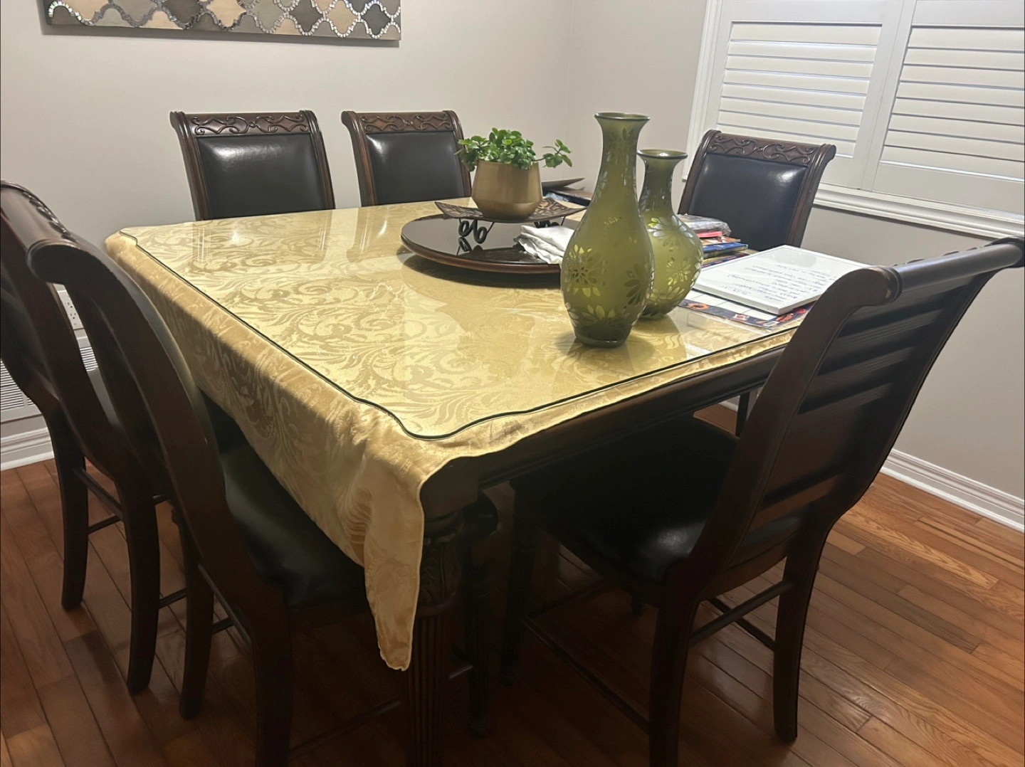Black Extendable Dining Table with 6 Chairs.