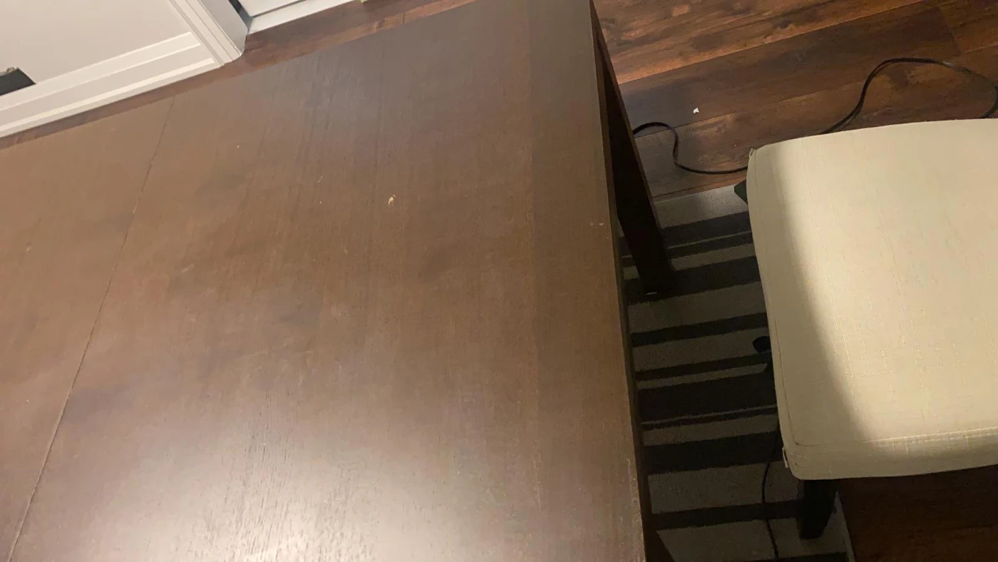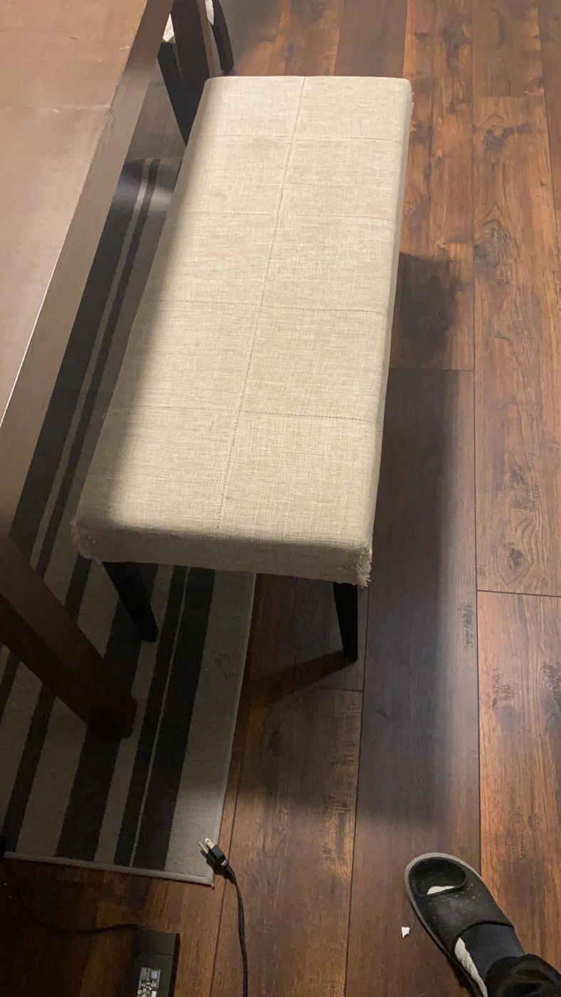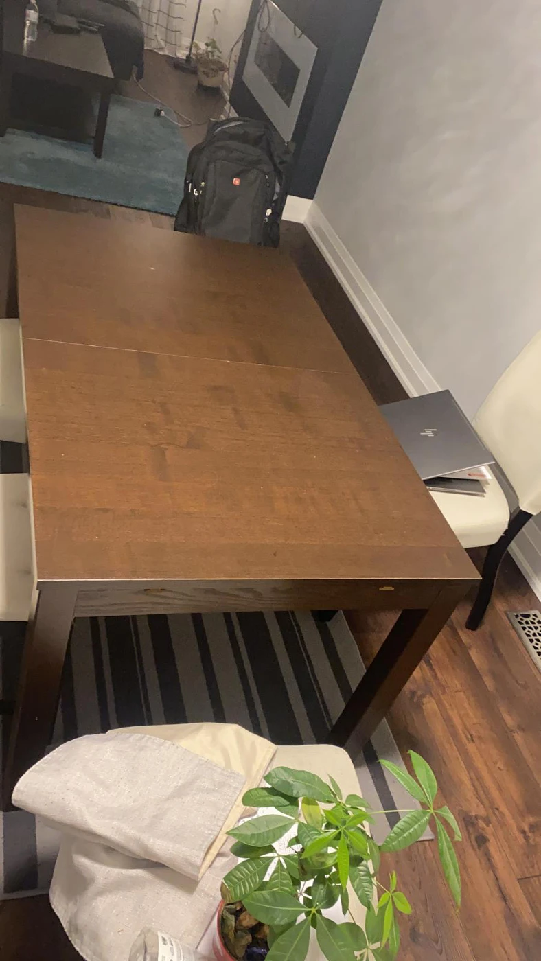 15Dinning table with 4 chairs and bench,in perfect conditions, selling as im moving to a smaller apartment and it doesn't fit.Width 82 cm,Length 140,height 90,Bench size length 1m,width 45.The table opened is 170 cm.It has only one small scratch as you can see in the photo.