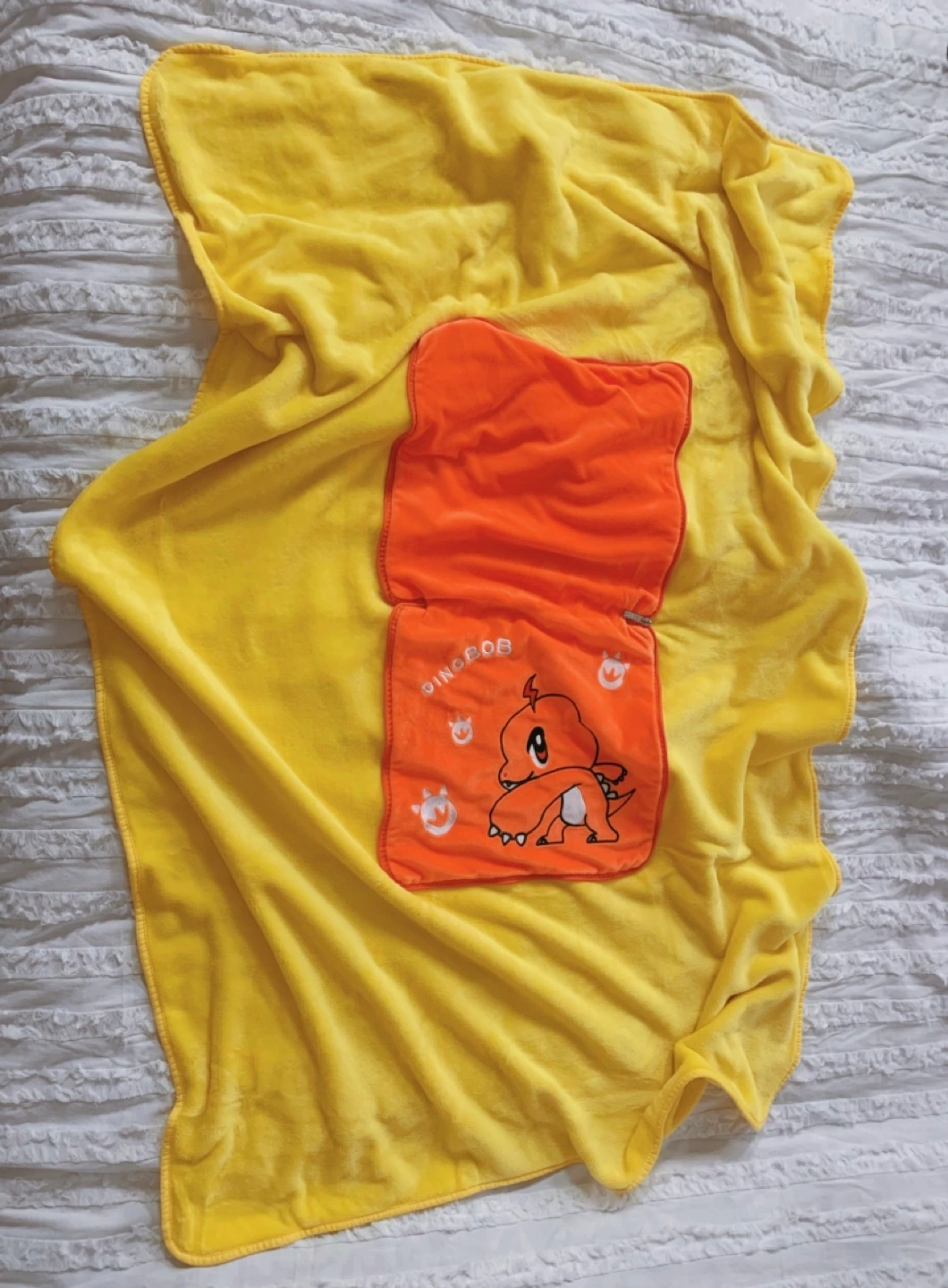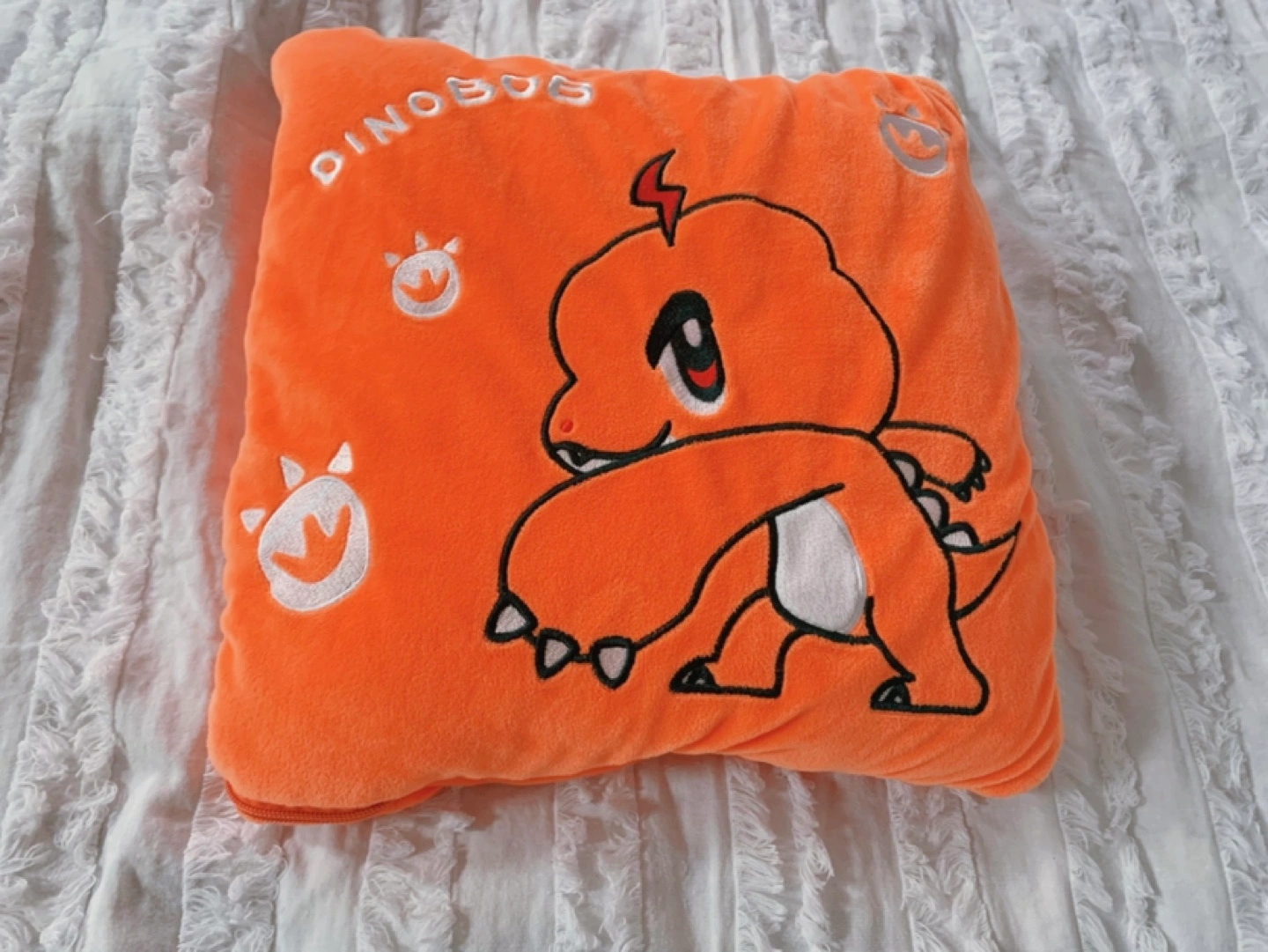 DinoBob 2-in-1 Pillow & Blanket – Soft & Cozy • Condition: Gently used, in great condition • Design: Cute embroidered orange dinosaur (DinoBob) on the pillow • 2-in-1 design: Transforms from a plush pillow into a soft blanket • Pillow Color: Orange with embroidered DinoBob character • Blanket Color: Bright yellow • Material: Soft plush fabric, warm and comfortable • Size: Compact pillow, expands into a full-size blanket • Perfect for: Kids, travel, car rides, nap time, or home use Adorable and practical 2-in-1 plush pillow and blanket featuring a cute DinoBob design. The pillow unzips to reveal a cozy yellow blanket, making it perfect for kids or as a travel companion. Soft, lightweight, and easy to carry!