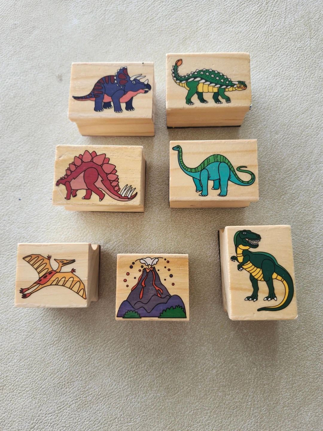 70Here's a set of seven cute dinosaur stamps! They're in great shape and ready for a new home. Perfect for kids' crafts or adding a fun touch to your stationery