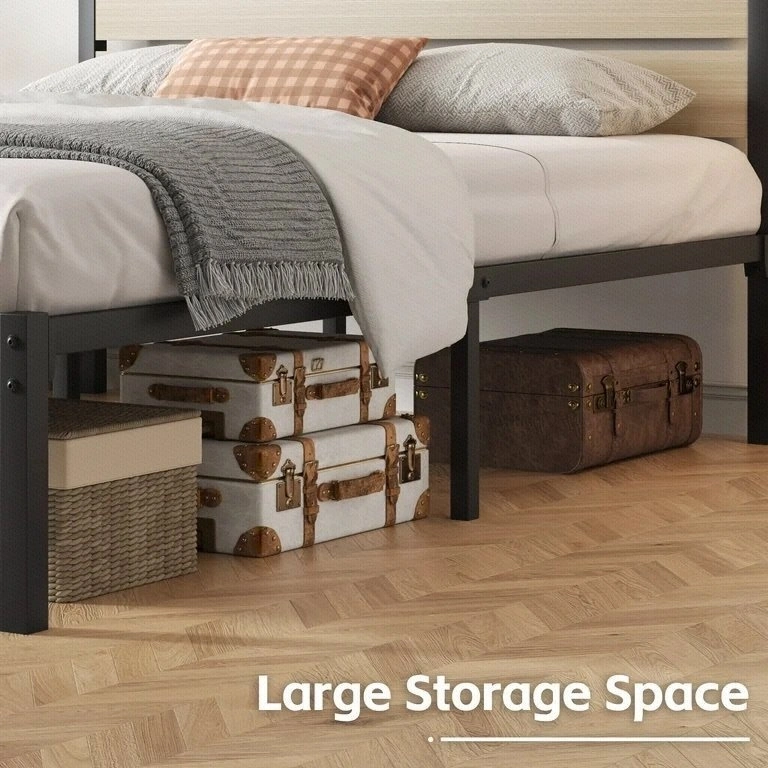 Underbed storage space: The 14.2” high bed frame creates an extra large storage space underneath for organizing bedroom supplies.