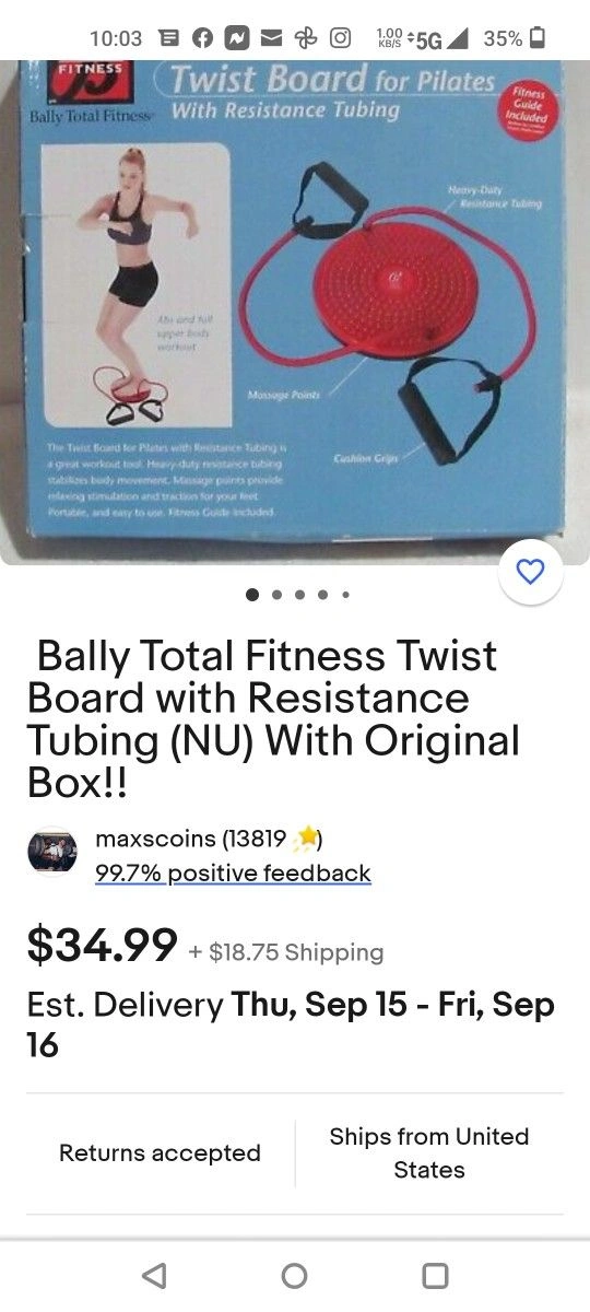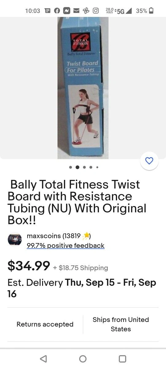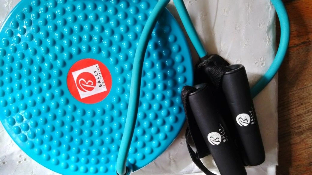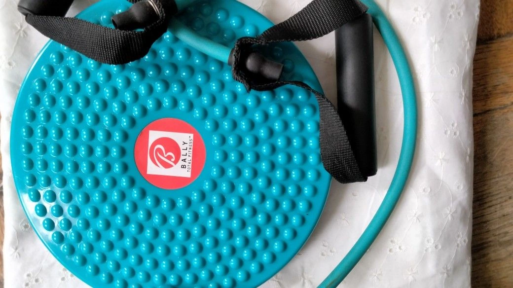 This Bally Total Fitness Twist Board with resistance tubing is no longer made, and you can't find them attached like this anymore. It was in storage and never used, just a bit dusty so I wiped it down. The heavy-duty resistance tubing helps stabilize your body for a complete workout. Features massage points for foot stimulation and traction. You can also stretch and bend your arms for bicep curls or triceps extensions. It's portable and can be used at home, in the office, or at the gym. Color: Blue. Activity: Fitness.