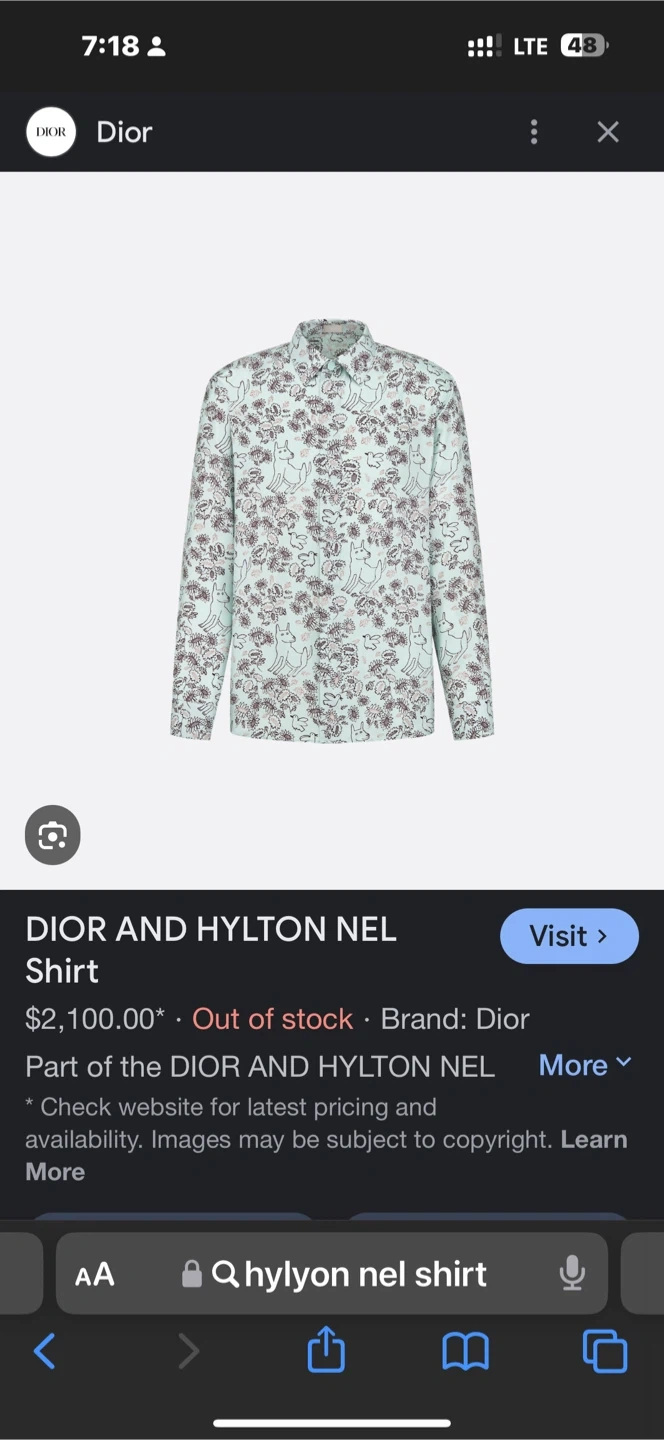 10Dior And Hylton Nel Shirt with a unique floral and animal print. Comes with the original box and bag.