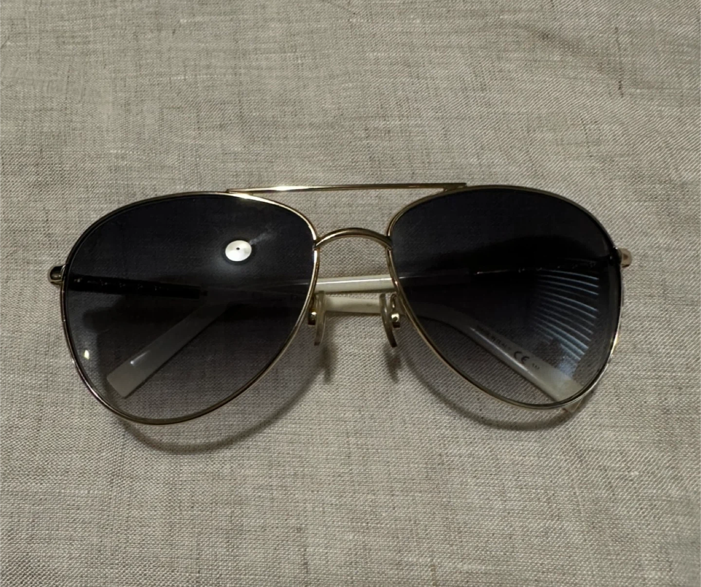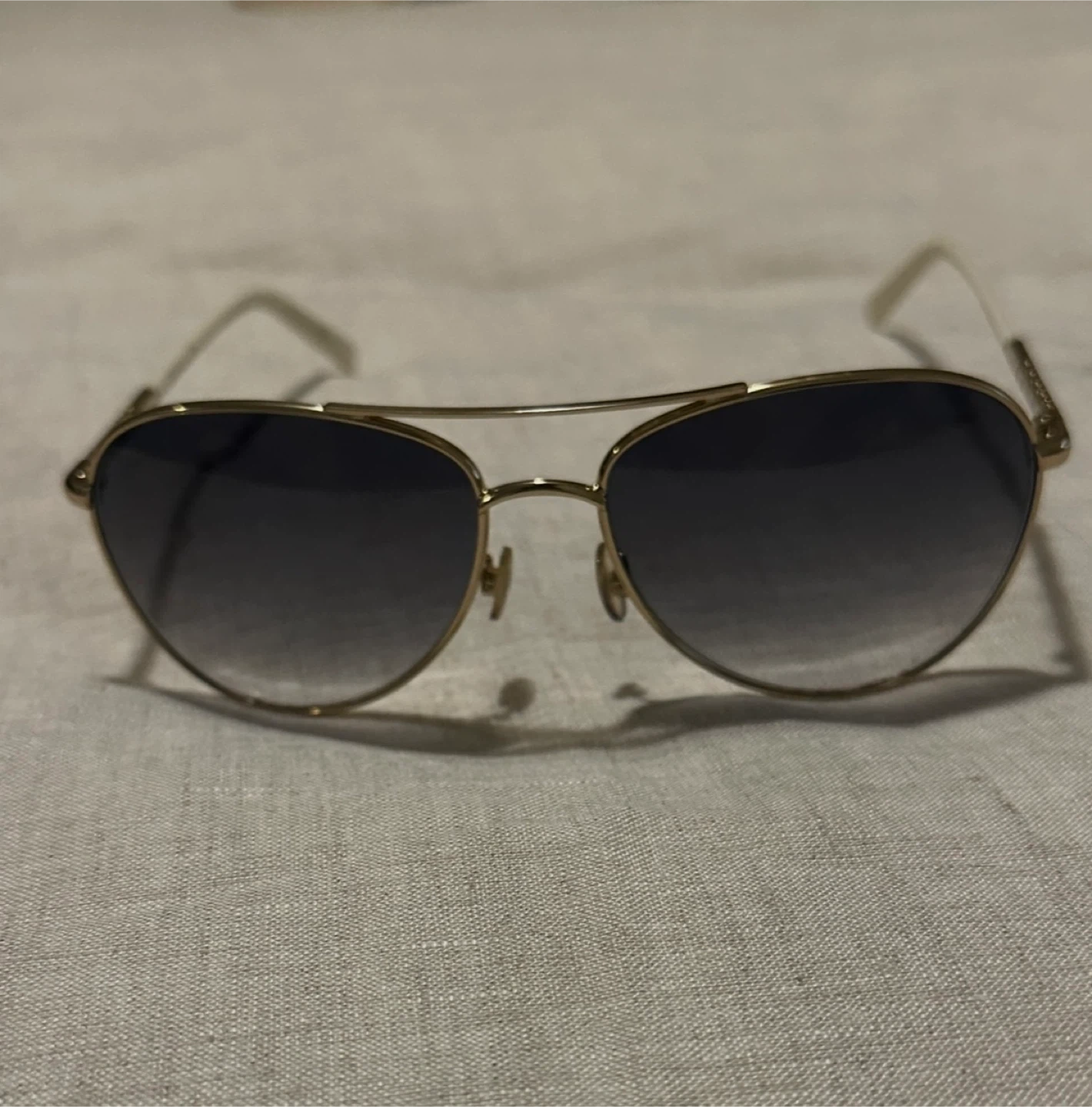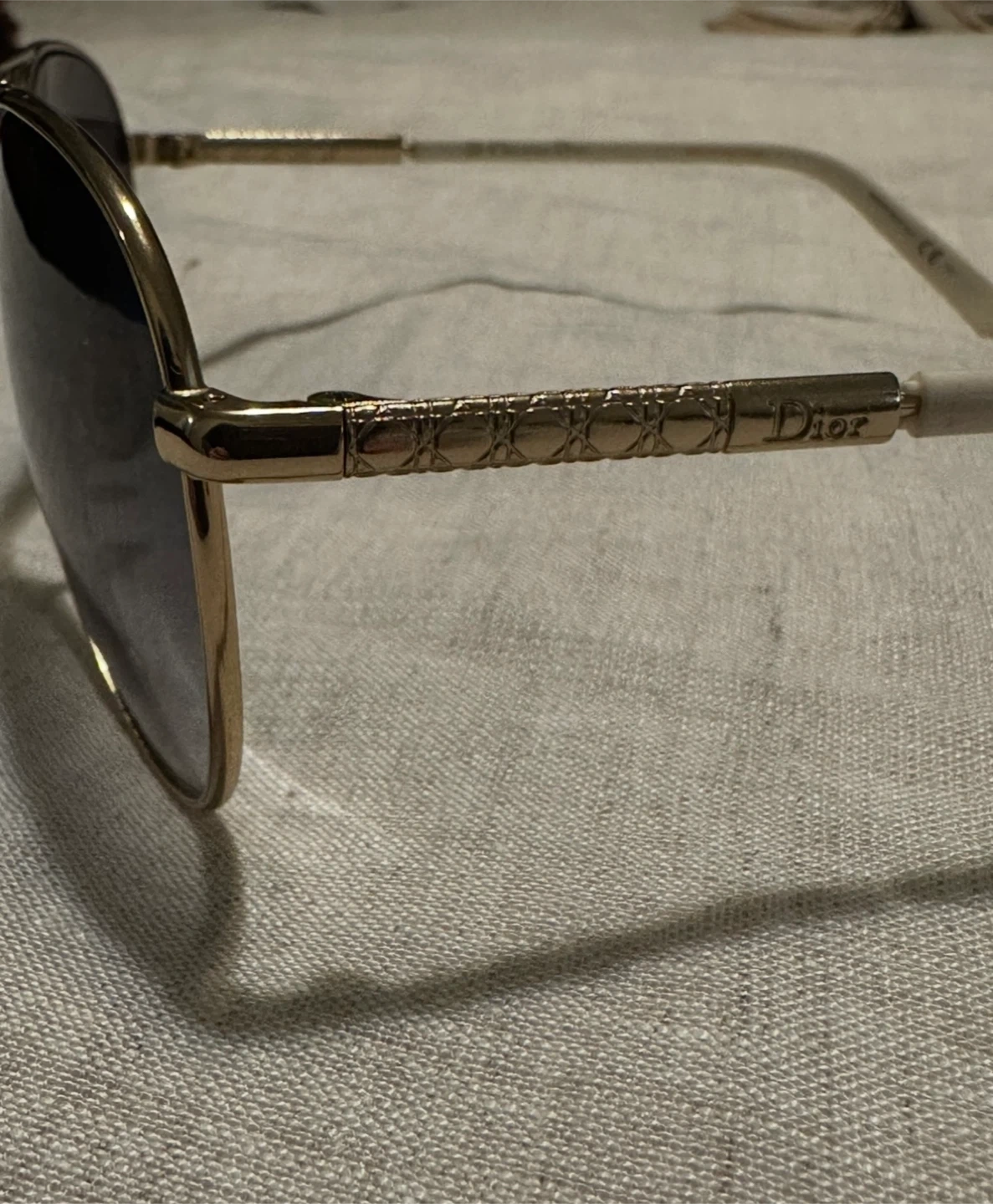 58Selling a pair of Dior aviator sunglasses. They have a gold frame. The Dior logo is visible on the side. They're in great shape.