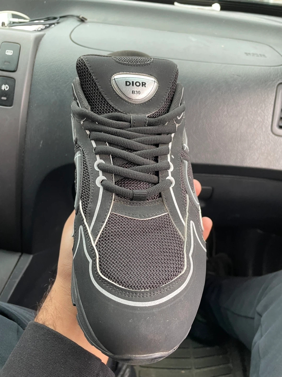 Selling a pair of Dior B30 sneakers in black. They have a sleek design with silver accents. Great for everyday wear!