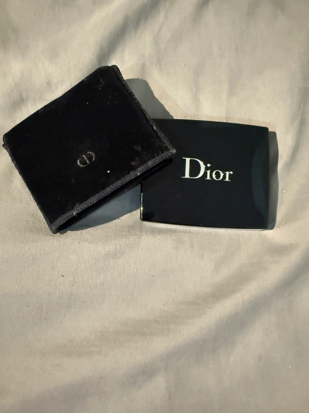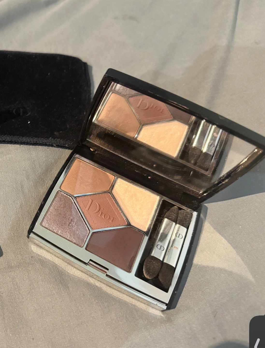 A Dior eyeshadow palette with a combination of warm neutral tones and applicators. Compact with a mirror inside. Perfect for creating a variety of eye looks, from subtle to dramatic, with ease.