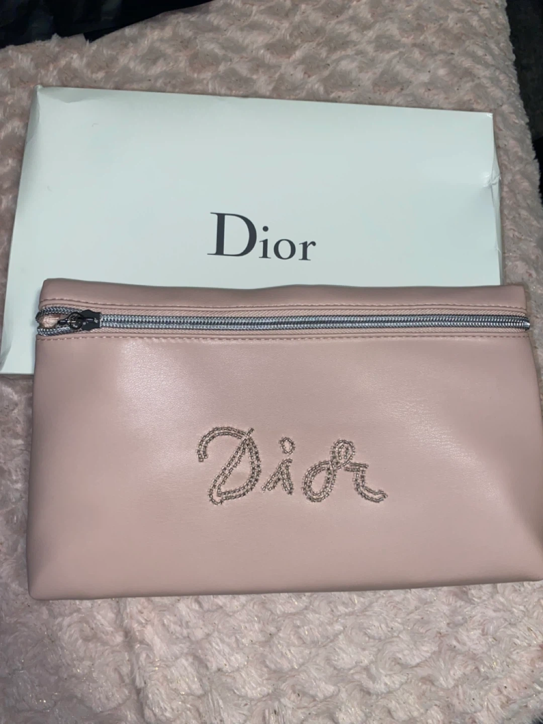 15Selling a cute Dior makeup pouch! It comes with its original box. The pouch is a light pink colour and has the Dior logo on it. Brand new