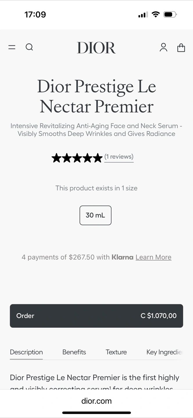 75Serum product with an attractive package. Rectangular shape. The box is a light golden colour. Would make a nice gift.retail price 1070 cad