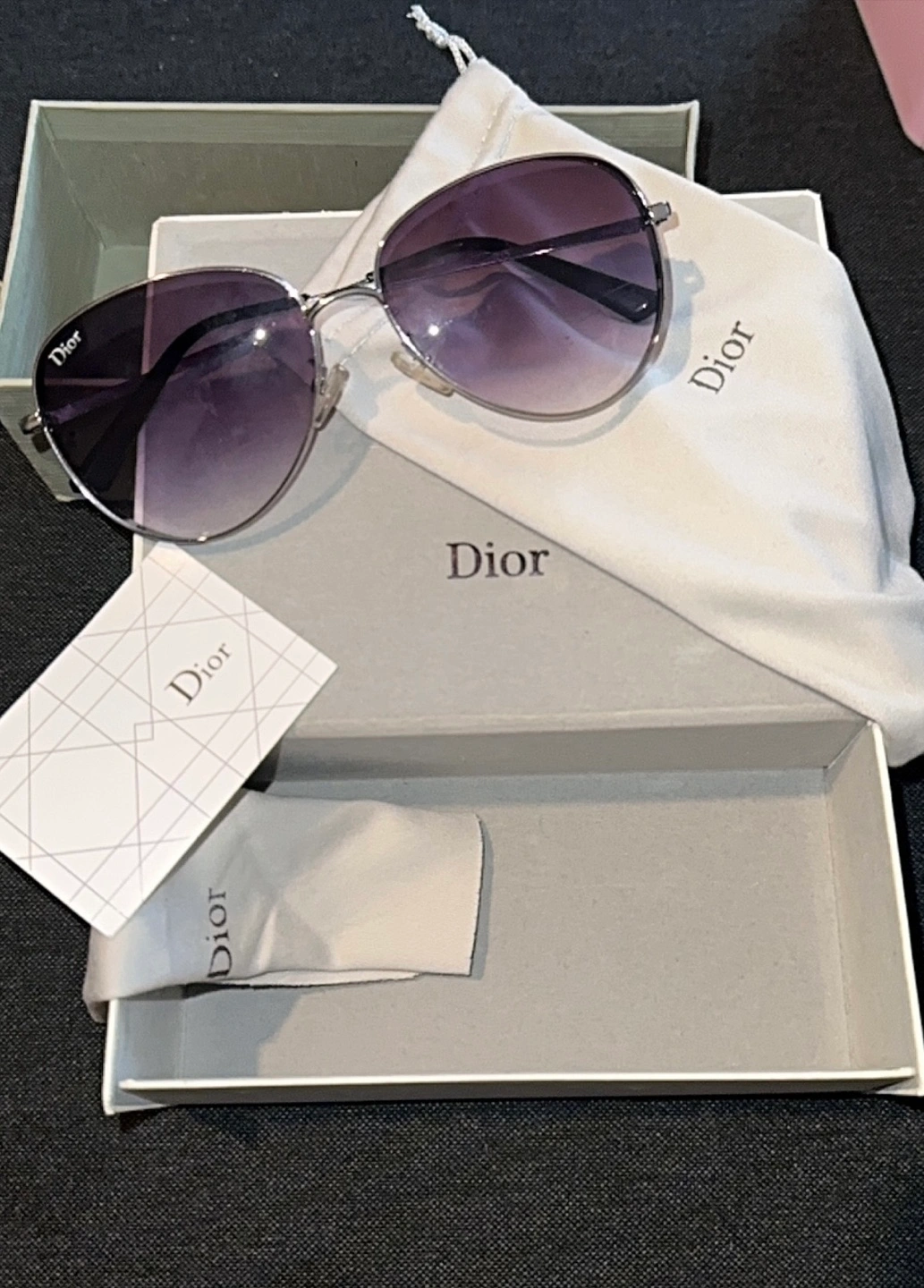 5New Dior sunglasses. Silver frame, gradient lenses. Comes with box and cleaning cloth. Perfect condition.