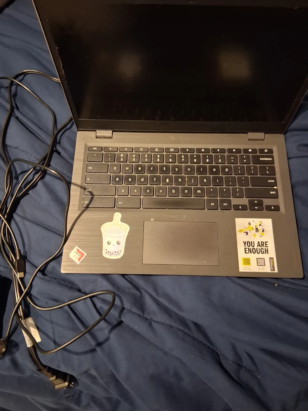 This is a Chromebook laptop, comes with its original charger. It's covered in fun stickers! Perfect for school or everyday browsing. As 4GB of RAM and 32GB eMMC storage