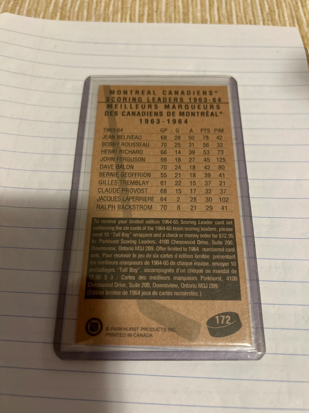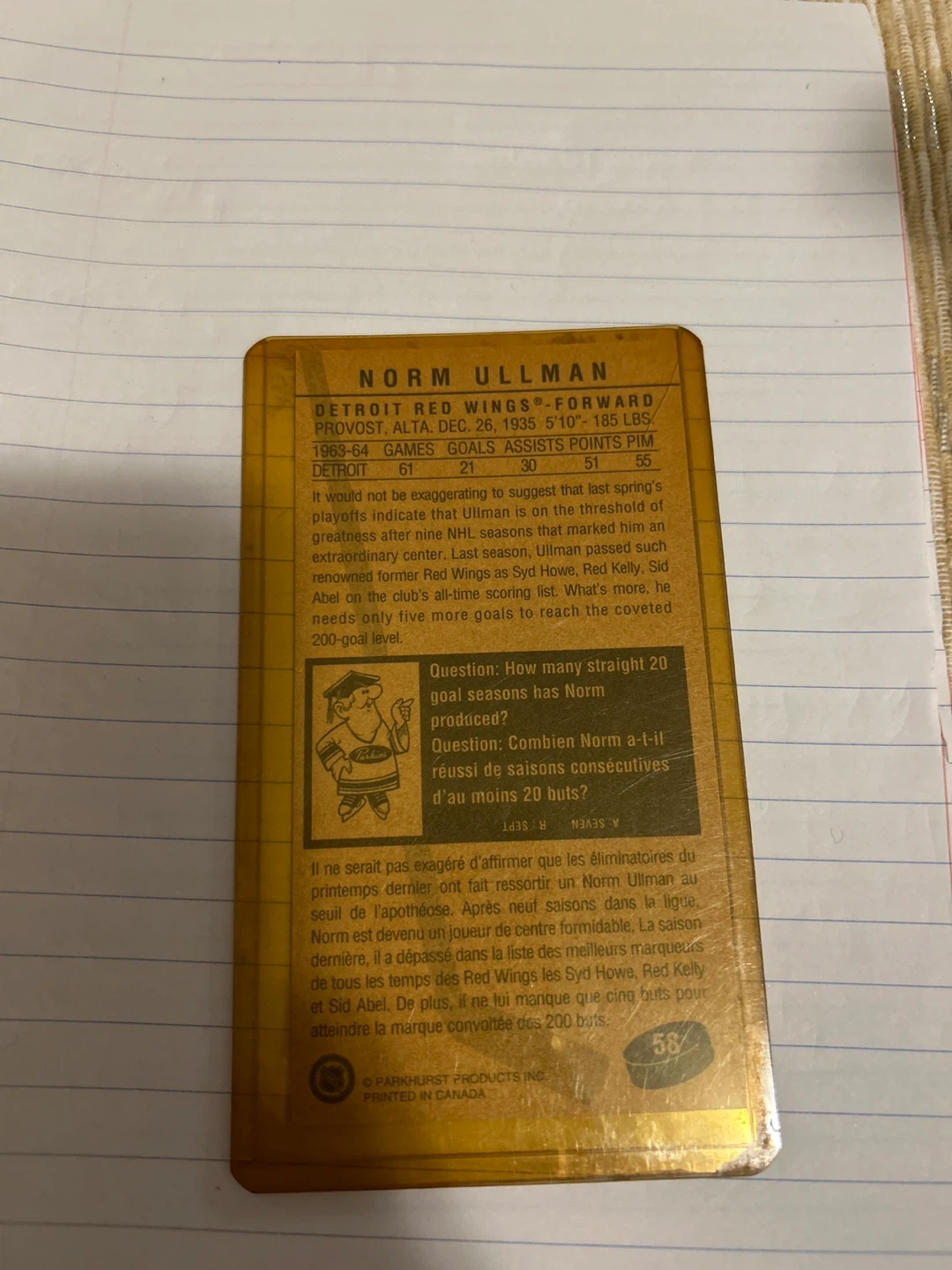 Norm Ullman & Jean Beliveau Hockey Cards