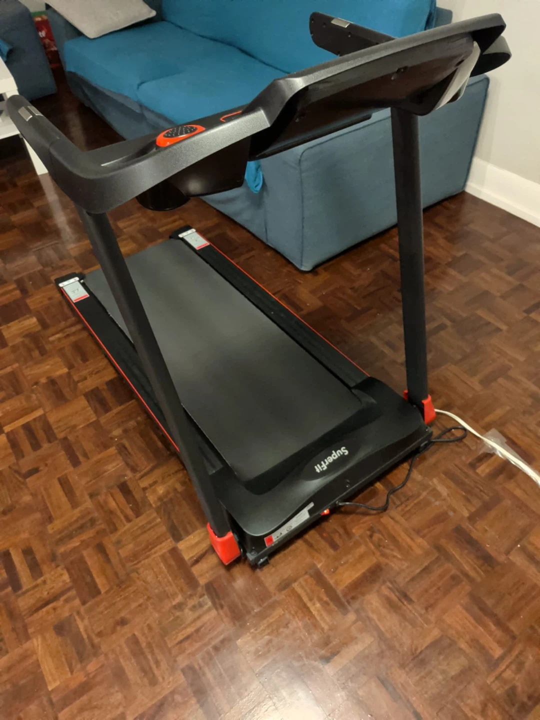 This SuperFit treadmill is perfect for your home workouts. It features multiple program options and a clear digital display for tracking your progress. Easy to fold and store.