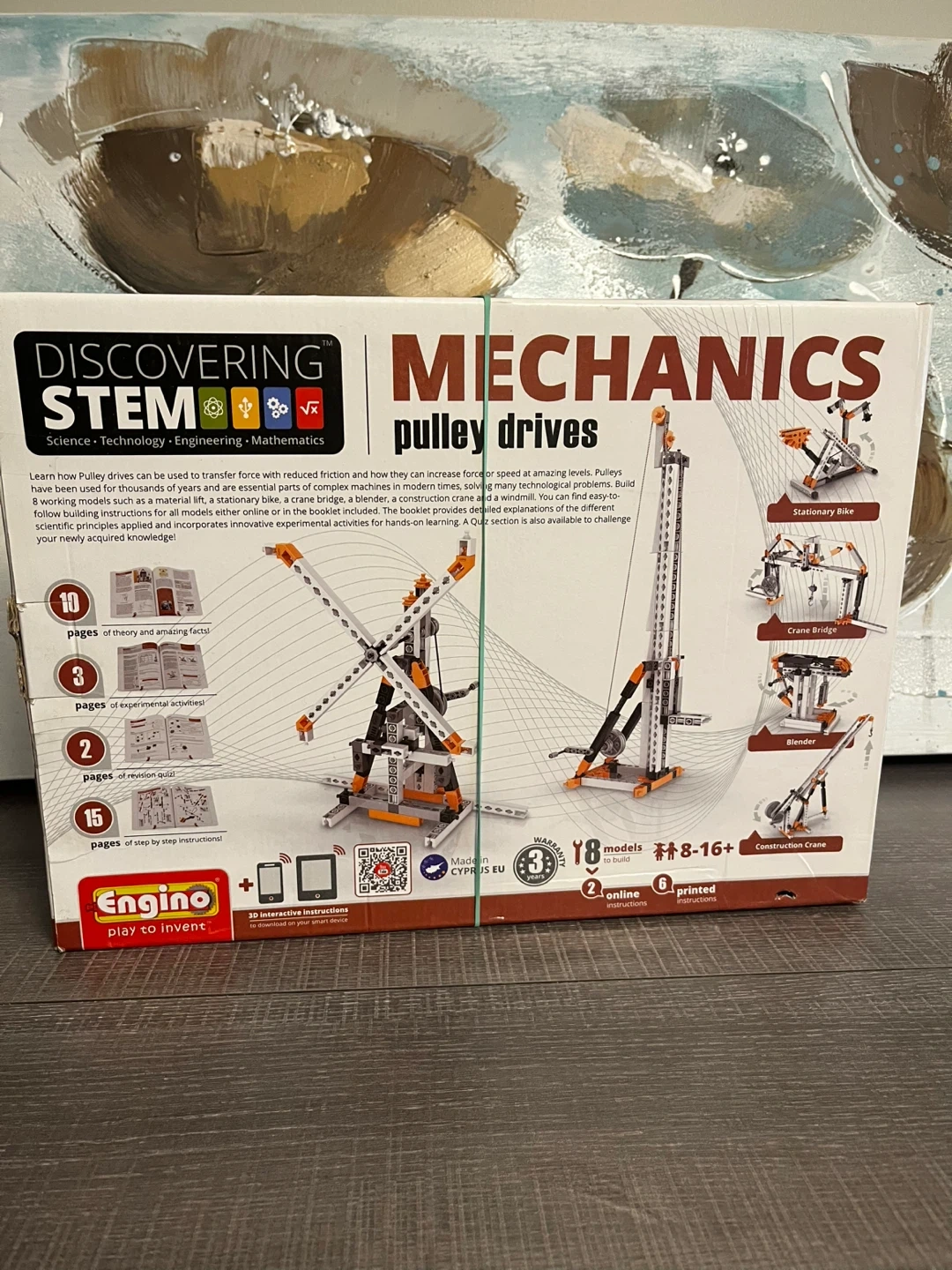 41Pick up in Utopia. Never been used Discovering STEM Mechanics Pulley Drives set. It includes everything you need to build 8 different models, like a stationary bike, windmill, and crane bridge! The set is designed for ages 8-16+. It's a great way to learn about pulleys and mechanics in a fun, hands-on way