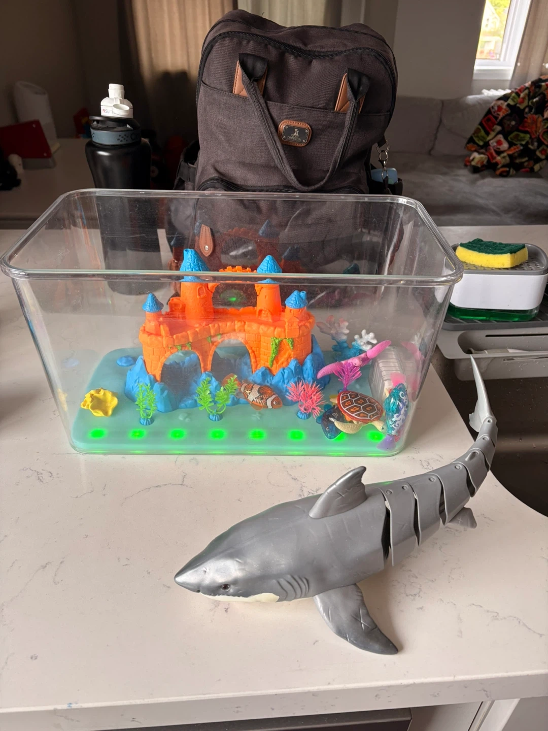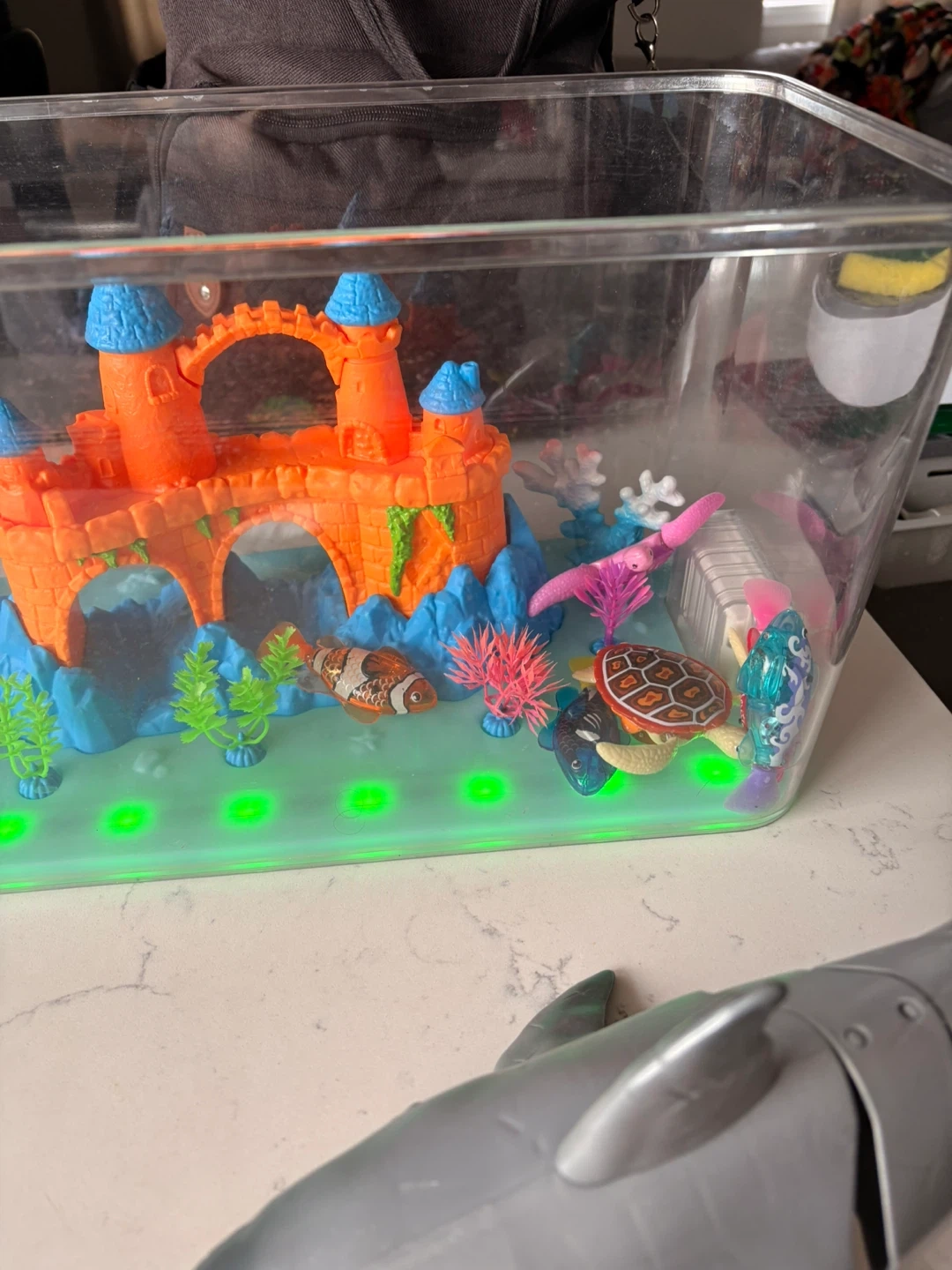 Looking to sell this Discovery Kids Animated Marine Adventure! It's a super fun toy with an animated underwater scene. The set includes a castle, various marine animals, and colourful plants, creating a vibrant and engaging environment for kids to explore and enjoy!