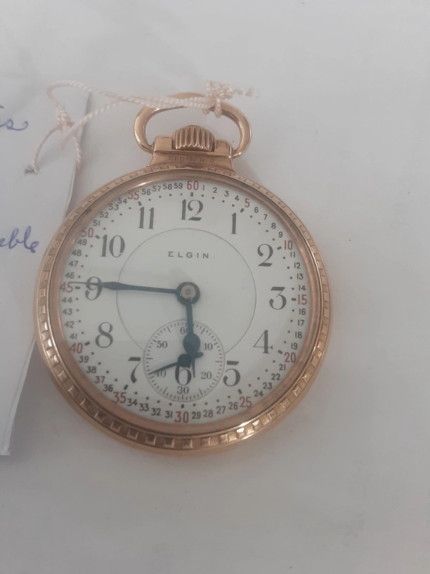 Elgin pocket watch, gold filled. 23 jewel, lever. High grade/reliable. 24 hr. Made 1922 Railroad grade. 93 grams ser.#24625966, $950.00 for viewing call 403 2411387