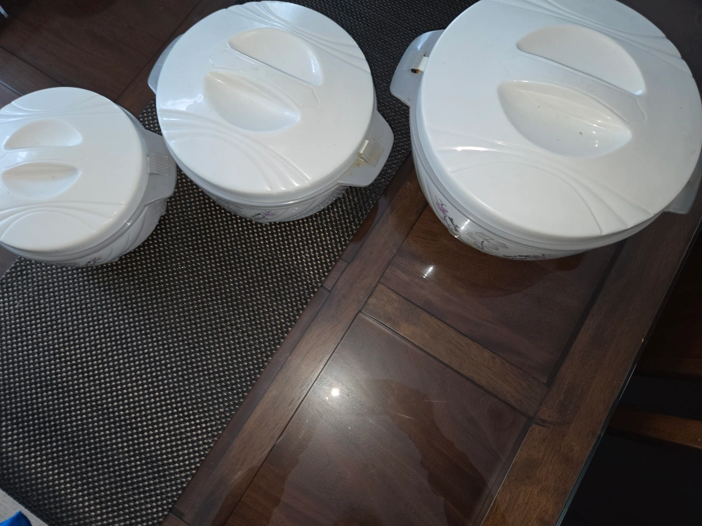 clean and nice like new maybe used few time amzing for serving and keeping warm the food